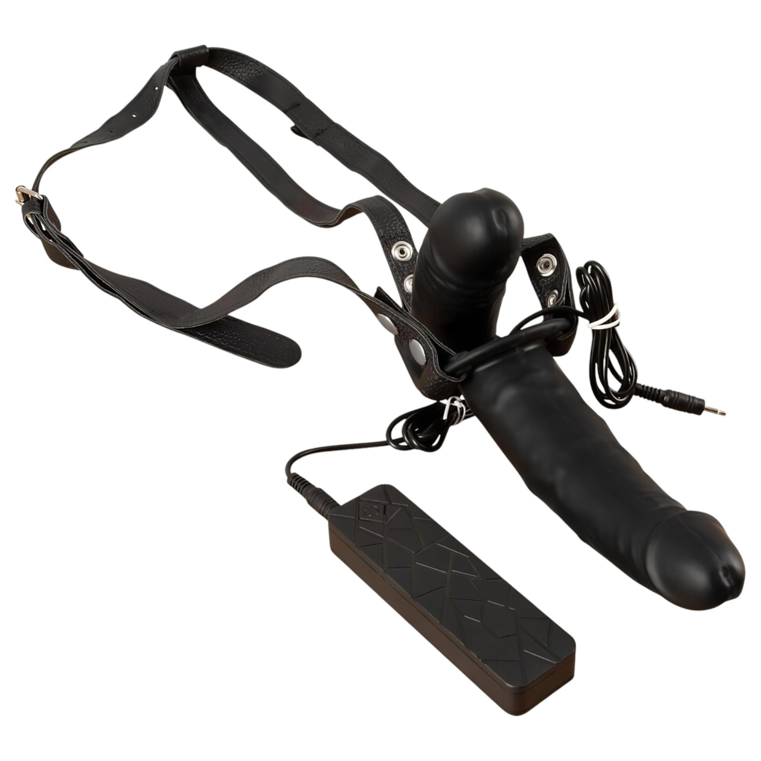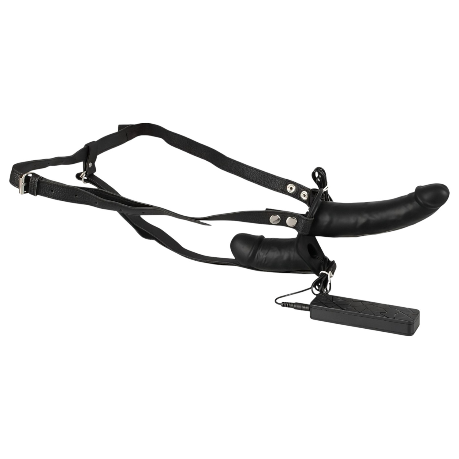 Dobbelt glede med ett enkelt trekk – påsettbar vibrasjonsduo med ekte lærstropper!