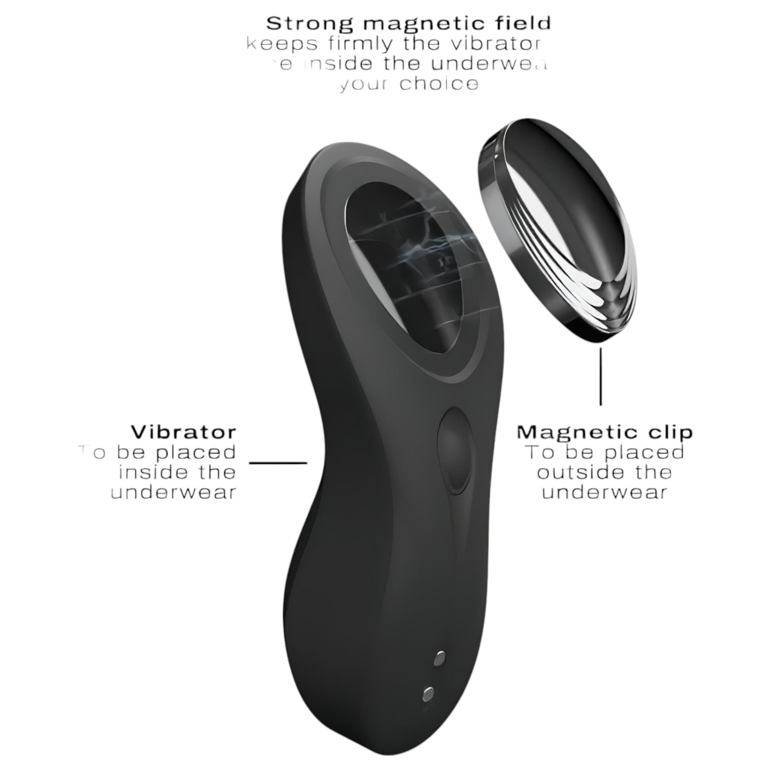 • Design som kan skjules i undertøyet, med sterk magnet for å holde den på plass – perfekt som superhemmelig nytelsesgiver
