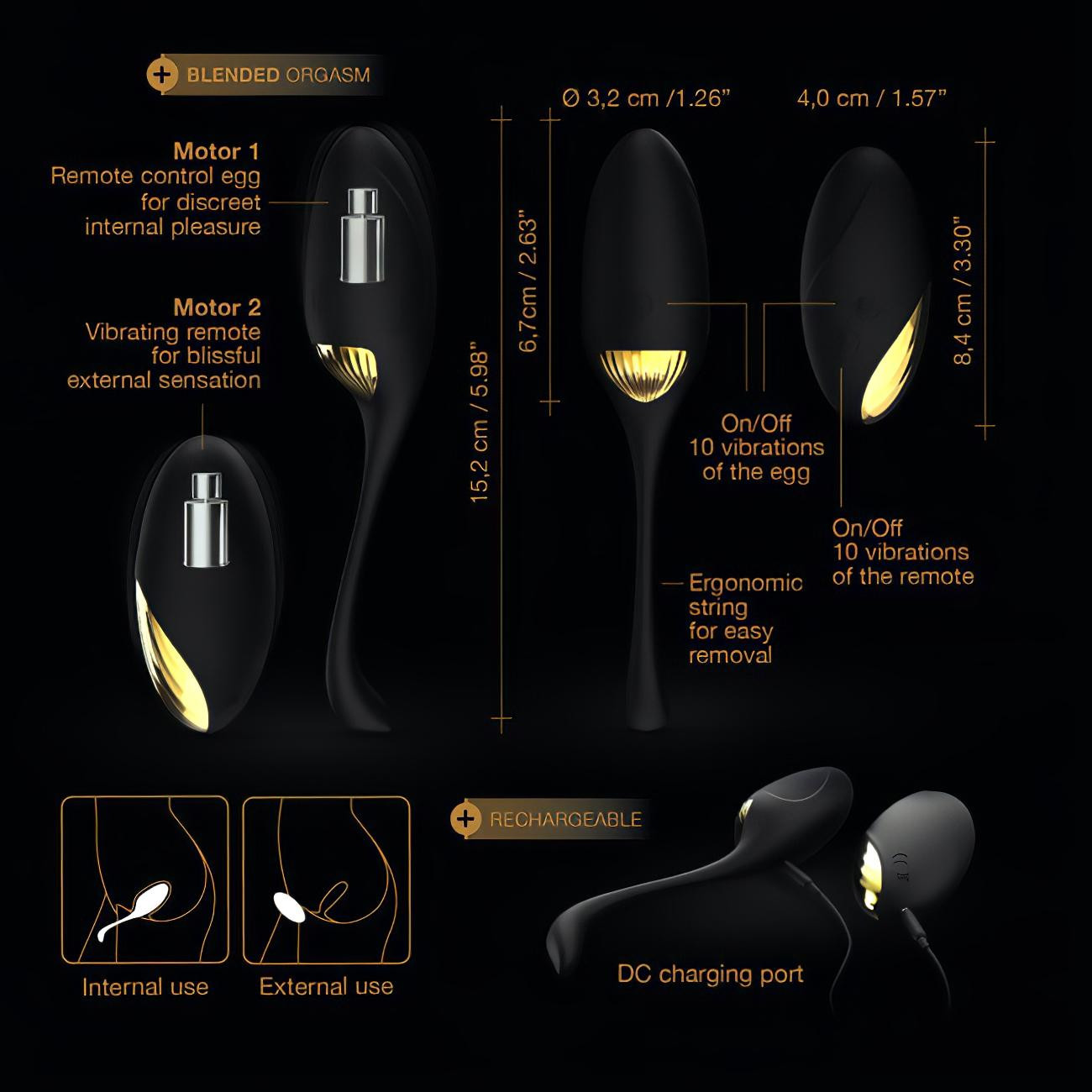 • 10 vibrasjonsmoduser både i egget og fjernkontrollen – variert nytelse