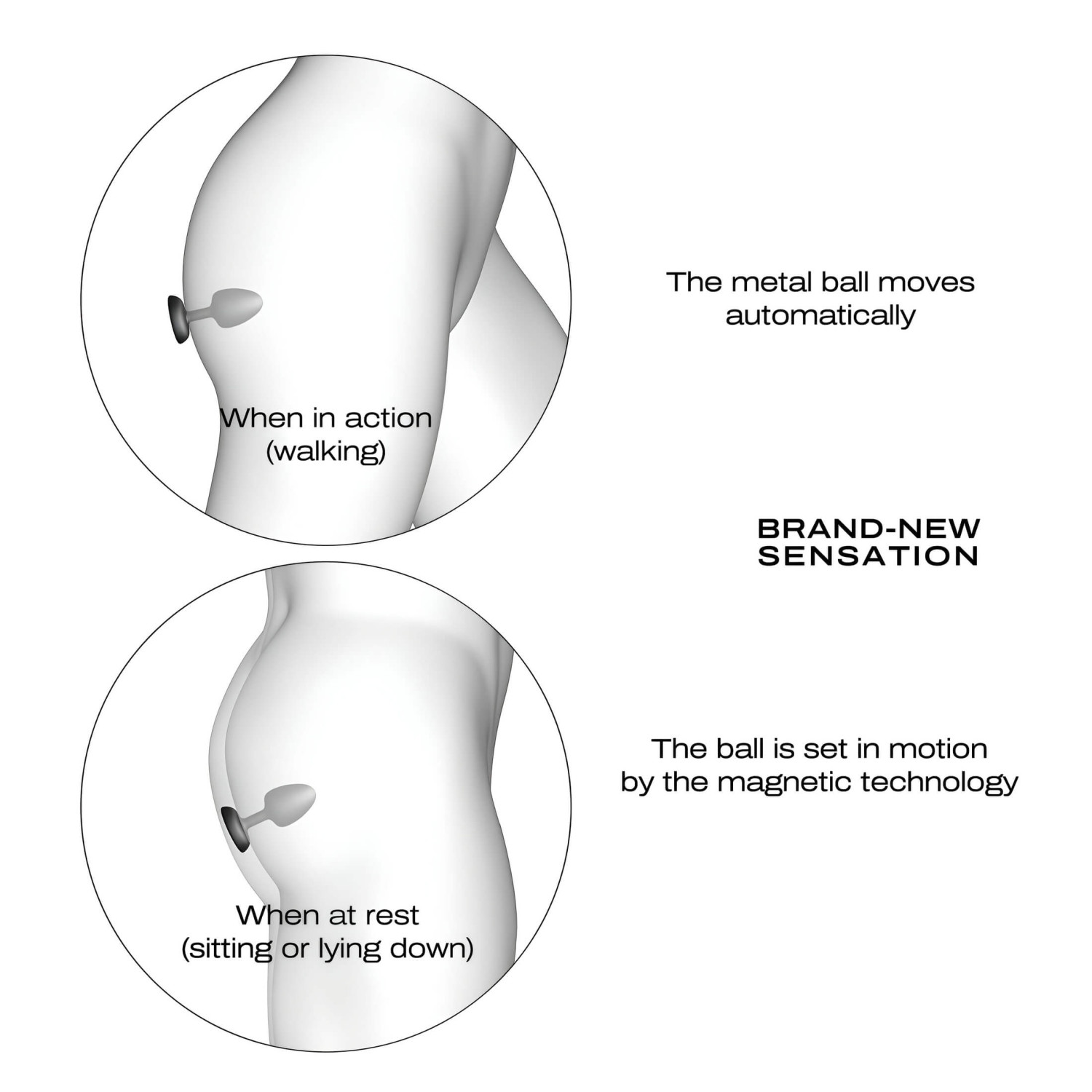 Sett den inn forsiktig, og kjenn hvordan metallkulens bevegelser gir forsiktige vibrasjoner når du beveger deg. Når du er i ro (sitter eller ligger), aktiverer den magnetiske teknologien kulen for ekstra stimulering.