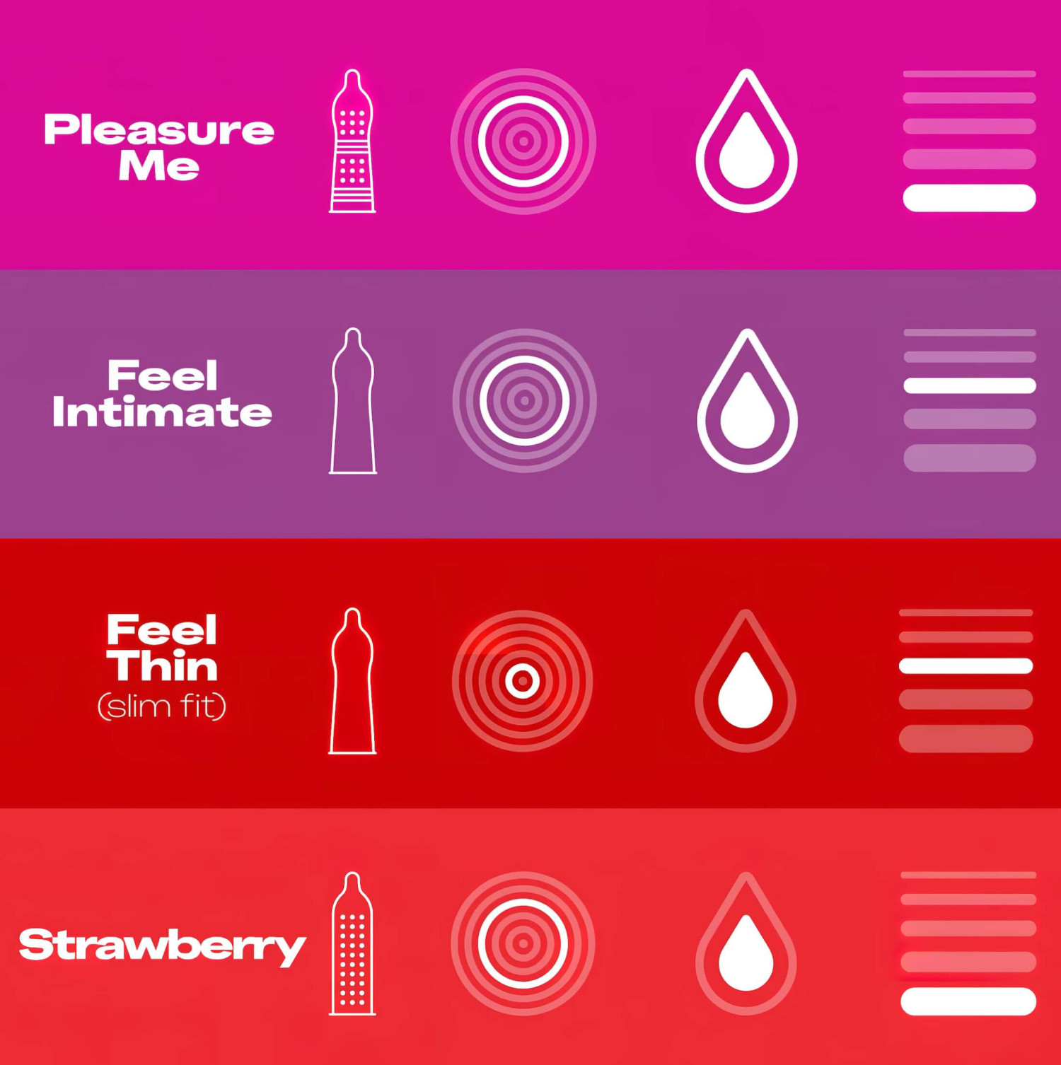 • Totalt 40 stk kondomer i 4 forskjellige typer