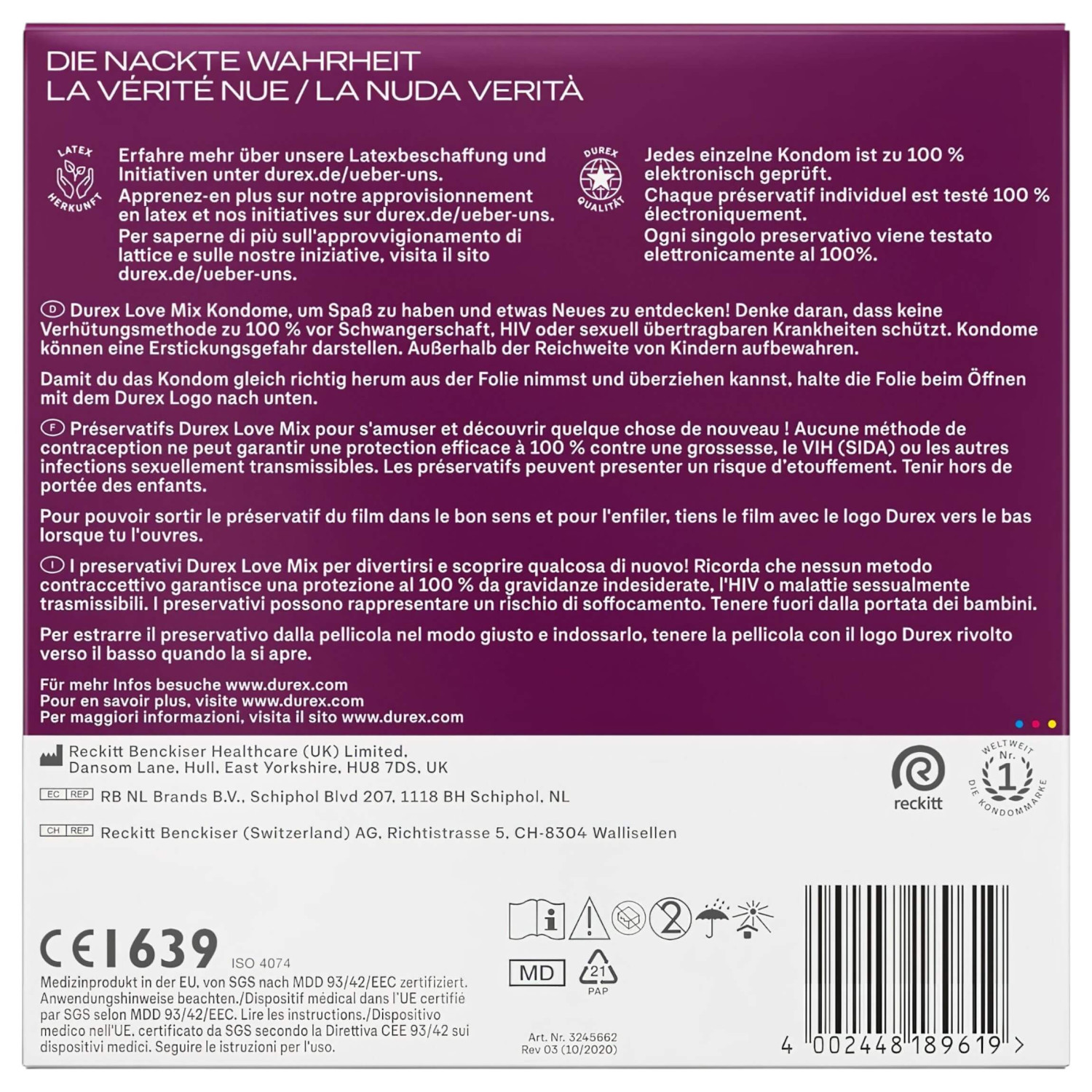 Husk følgende med Durex Love Mix – kondomutvalg: