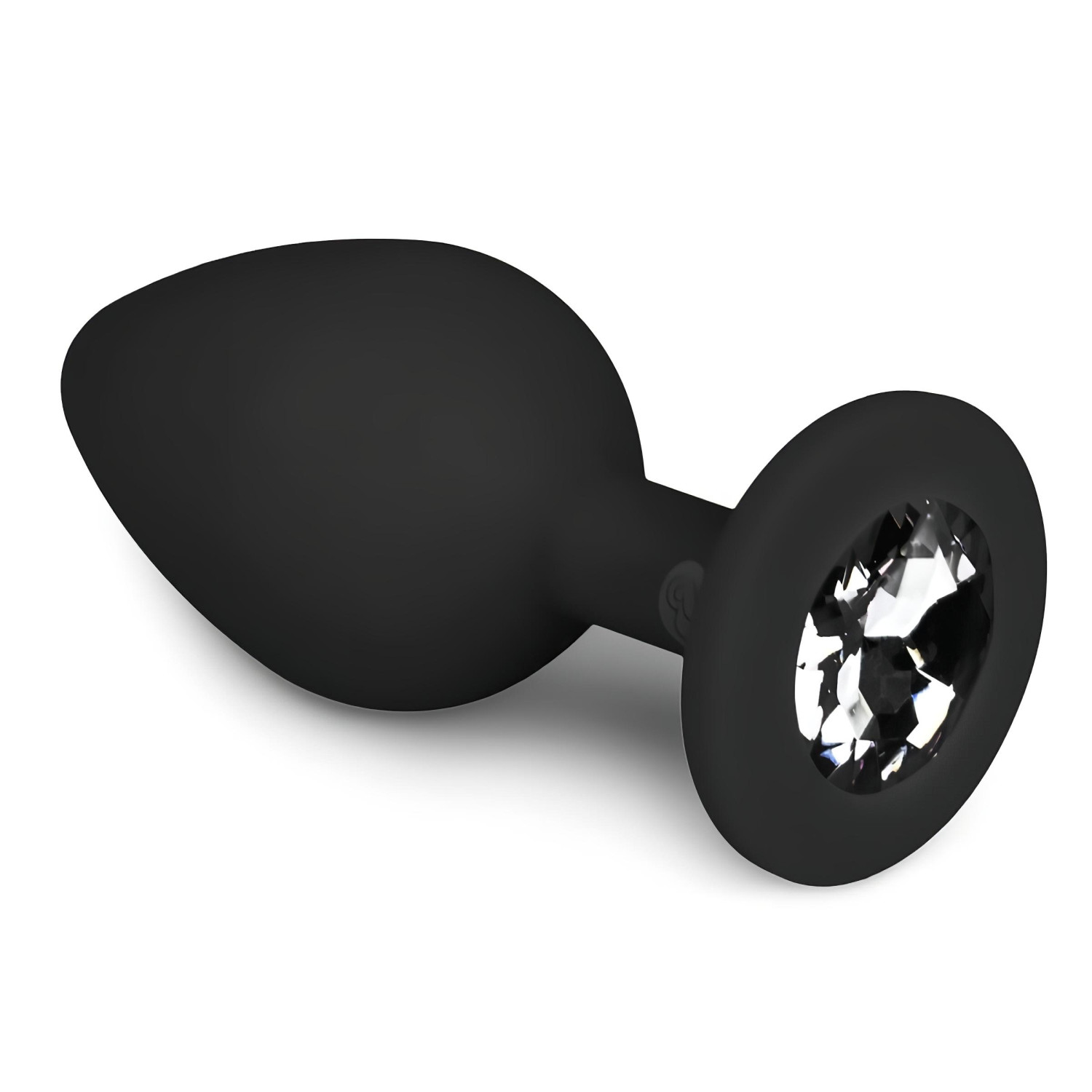 Easytoys Diamond - svart analplugg med hvit stein (medium)