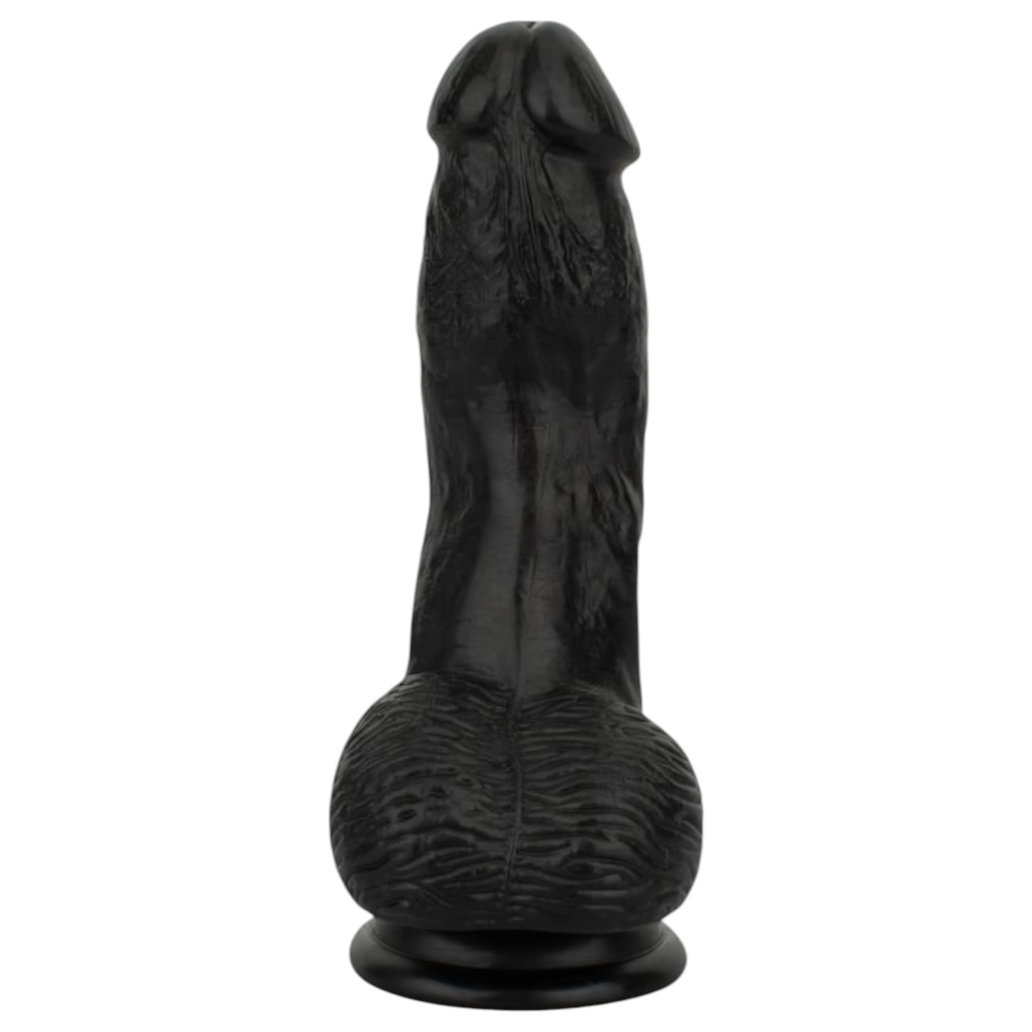 Opplev den realistiske følelsen med denne svarte dildoen med testikler!