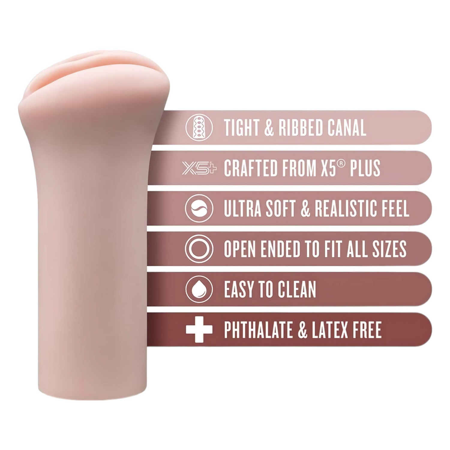 • Ultra realistisk materiale - myk, silkeaktig X5® Plus silikon.