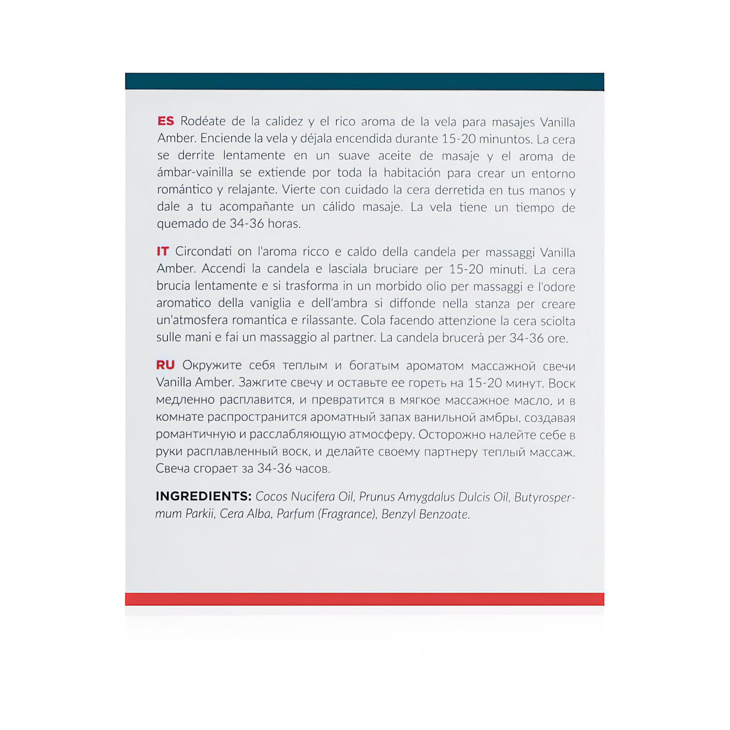 Sensuell massasjelys med en spesiell duftblanding av vanilje og rav, som sørger for at du føler deg som i paradis under en avslappende eller intim massasje, og din lidenskap får vinger!