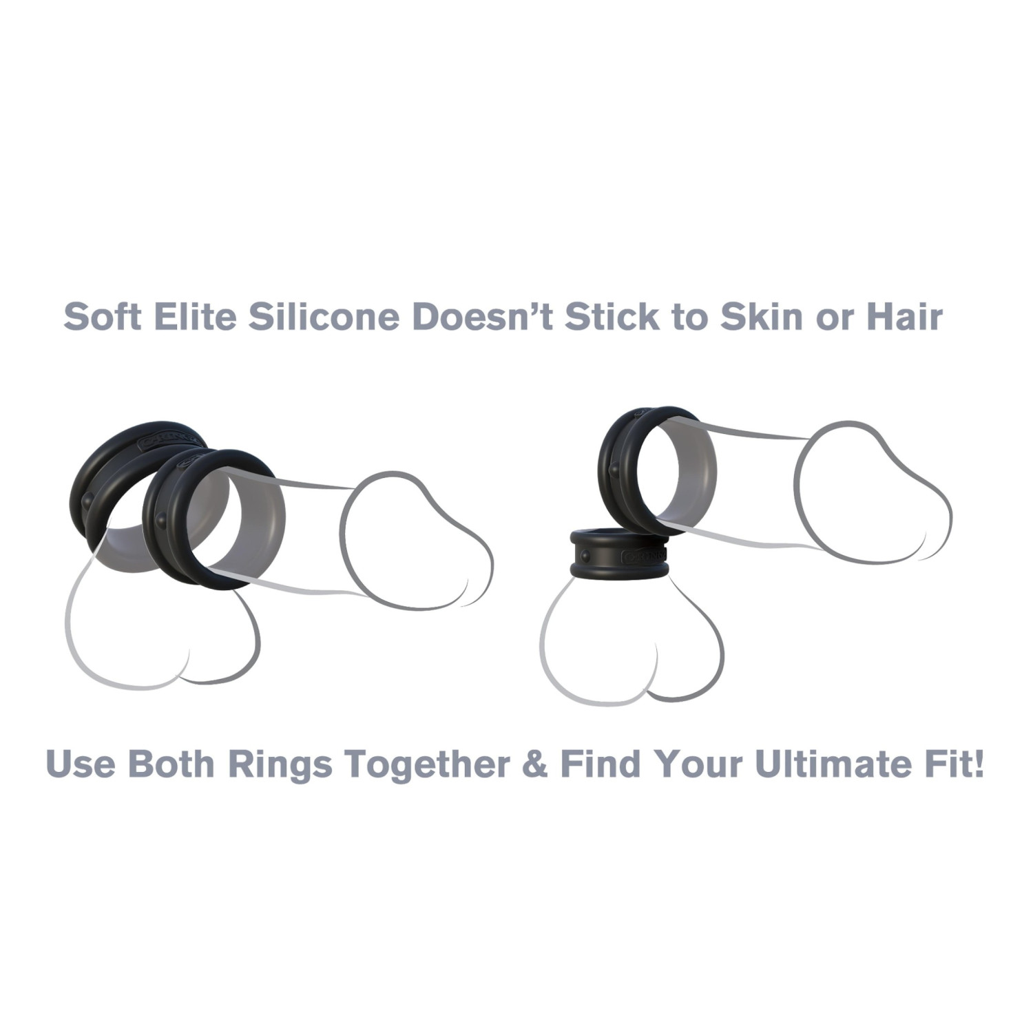 Påfør vannbasert glidemiddel på ringene og penis, plasser deretter først den mindre, 2,8 cm diameter penisringen ved roten, og deretter den større, 3,6 cm balleringen rundt testiklene. Den stramme følelsen gir en lett opphisselse og sterkere blodstrøm. Fjern forsiktig etter bruk, og rengjør med varmt vann og mild såpe.