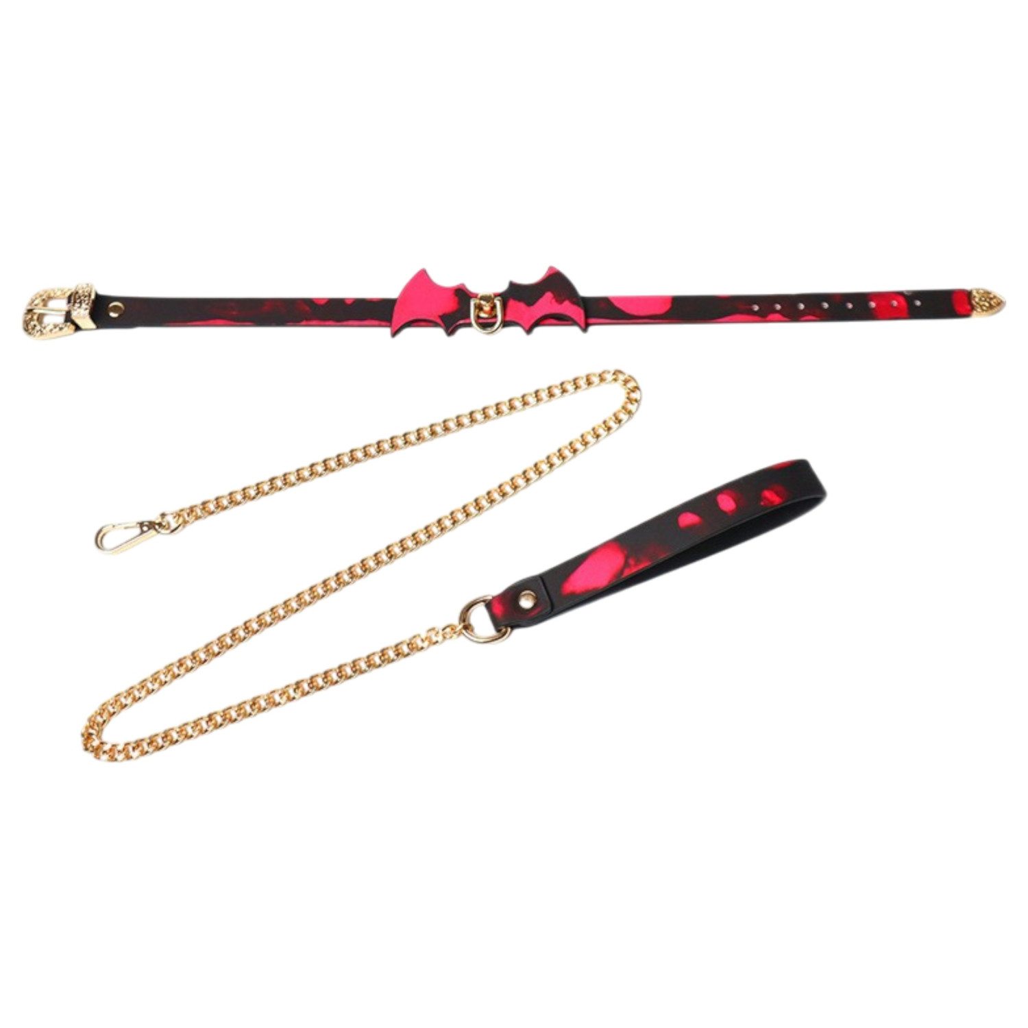 Dette unike fargeskiftende halsbåndet og båndsettet løfter leken med dominans og underkastelse til et visuelt, spennende nytt nivå. Når kroppens varme eller en lidenskapelig berøring treffer det, endrer materialet farge, slik at hver bevegelse og kommando gir en iøynefallende reaksjon. Det mykt polstrede, justerbare halsbåndet gir komfort, mens det avtagbare båndet med solid metallkjede og praktisk håndleddsstropp kompletterer opplevelsen.