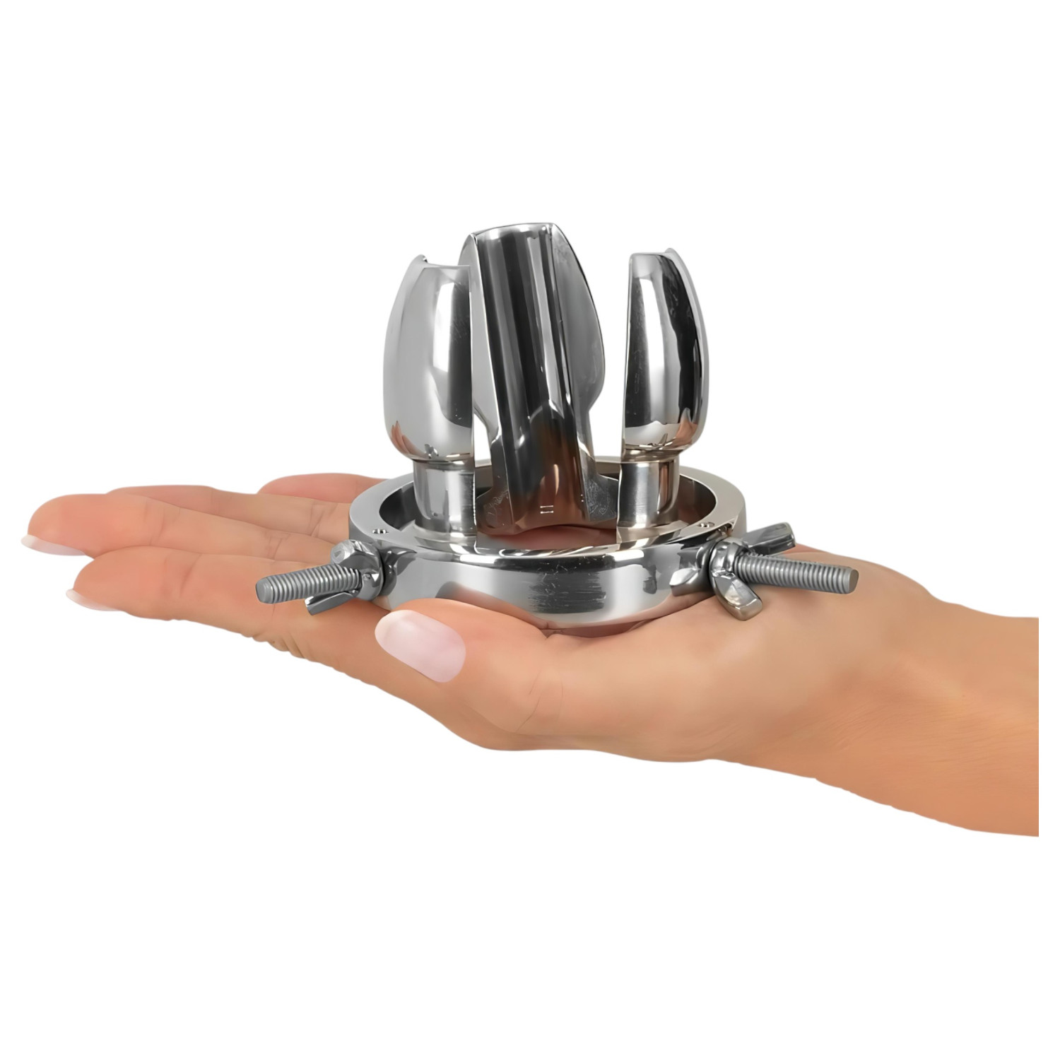 Bred åpning med full-metall dildo - kraftig og grundig, kun for de modigste!