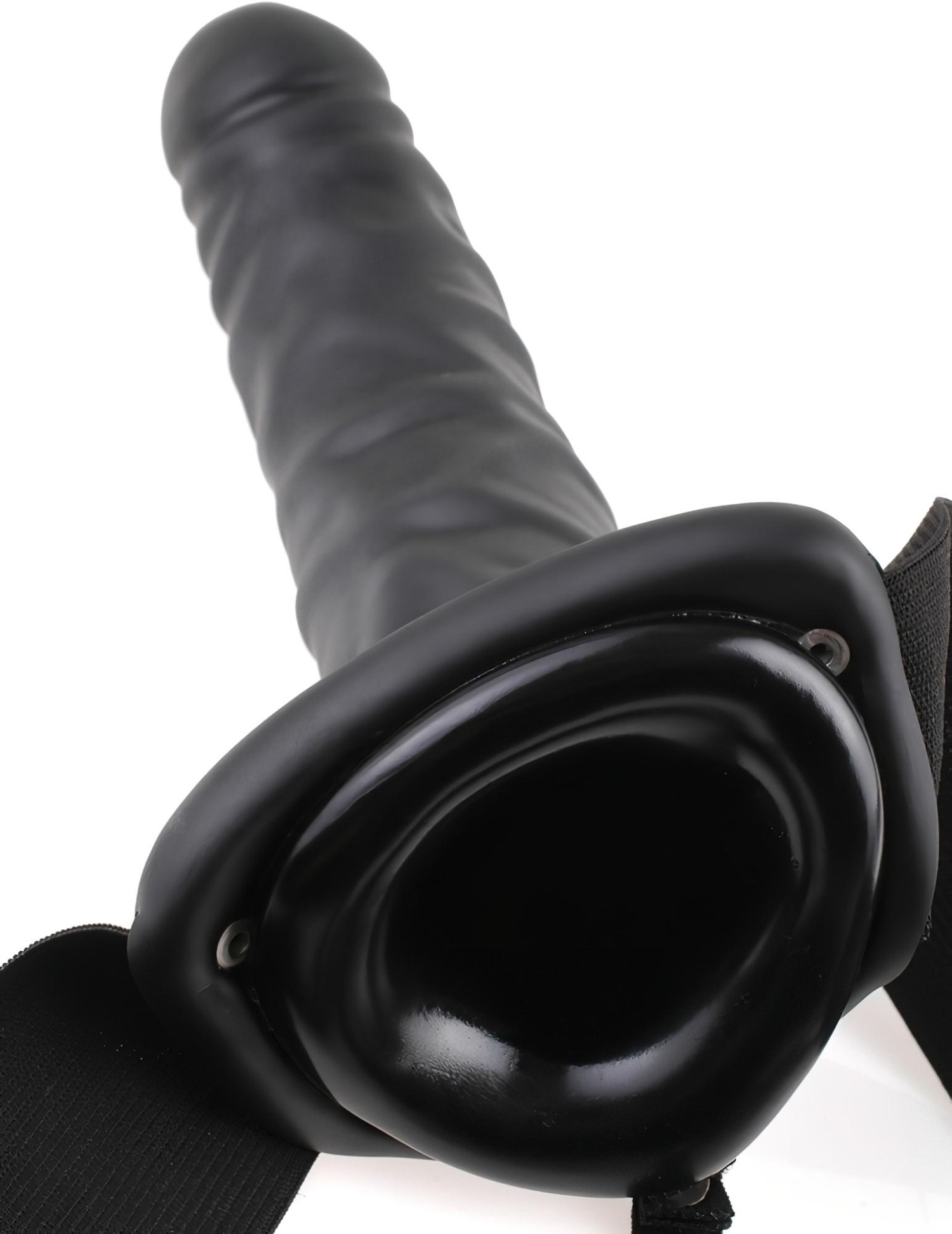 Fetisj Strap-On 8 - justerbar, hul vibrator (svart)