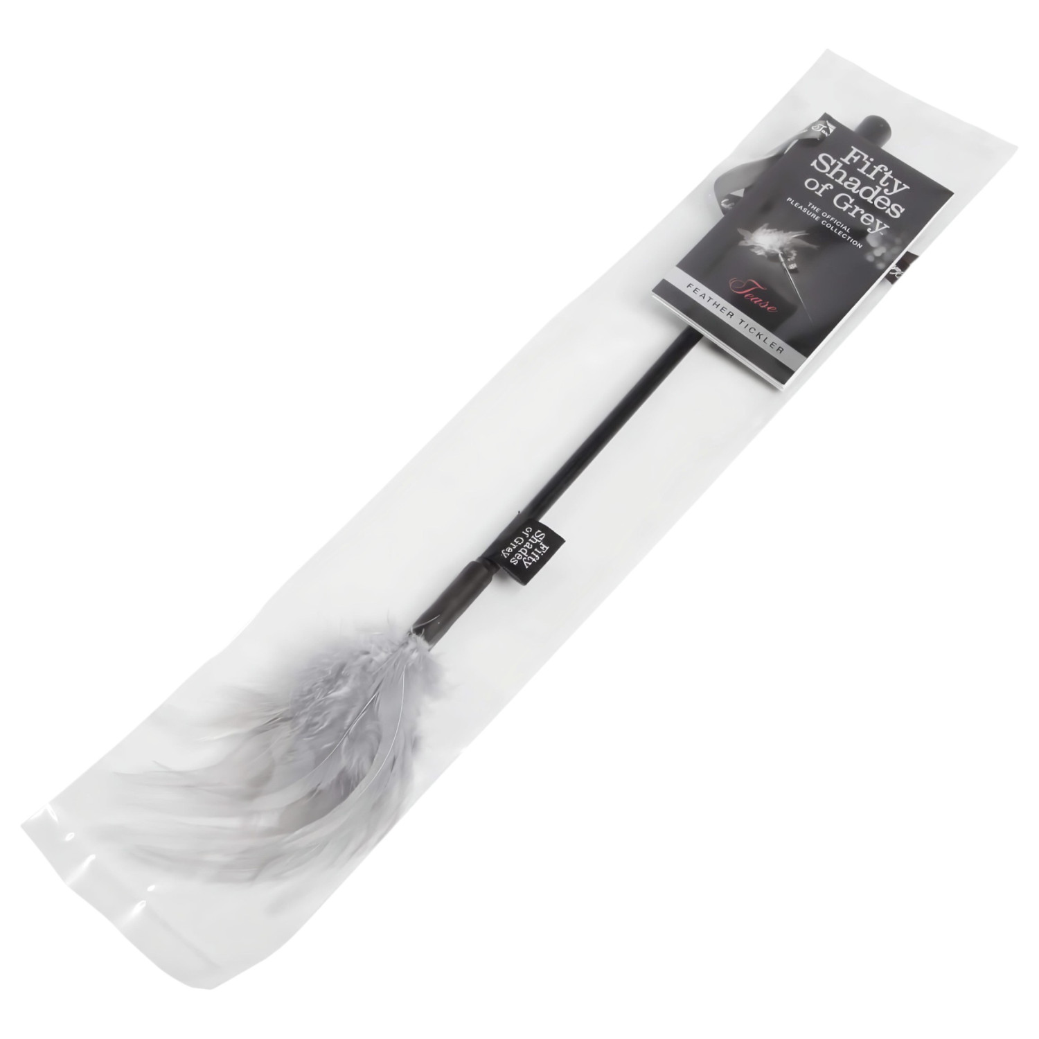 Skjem bort, kjæl og kil din kjære med denne vakkert utformede, myke, silkeaktige, grå fjærleken. Kiling og ekstatisk glede er garantert. Laget med et høykvalitets, robust svart plastikkhåndtak.