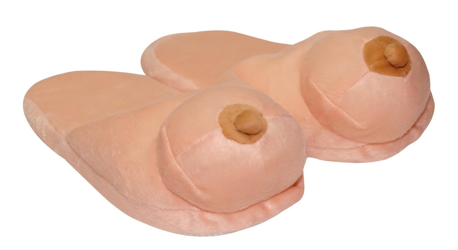 Morsomme tøfler med bryster som garantert vil få folk til å smile – til hjemmebruk eller som gave!