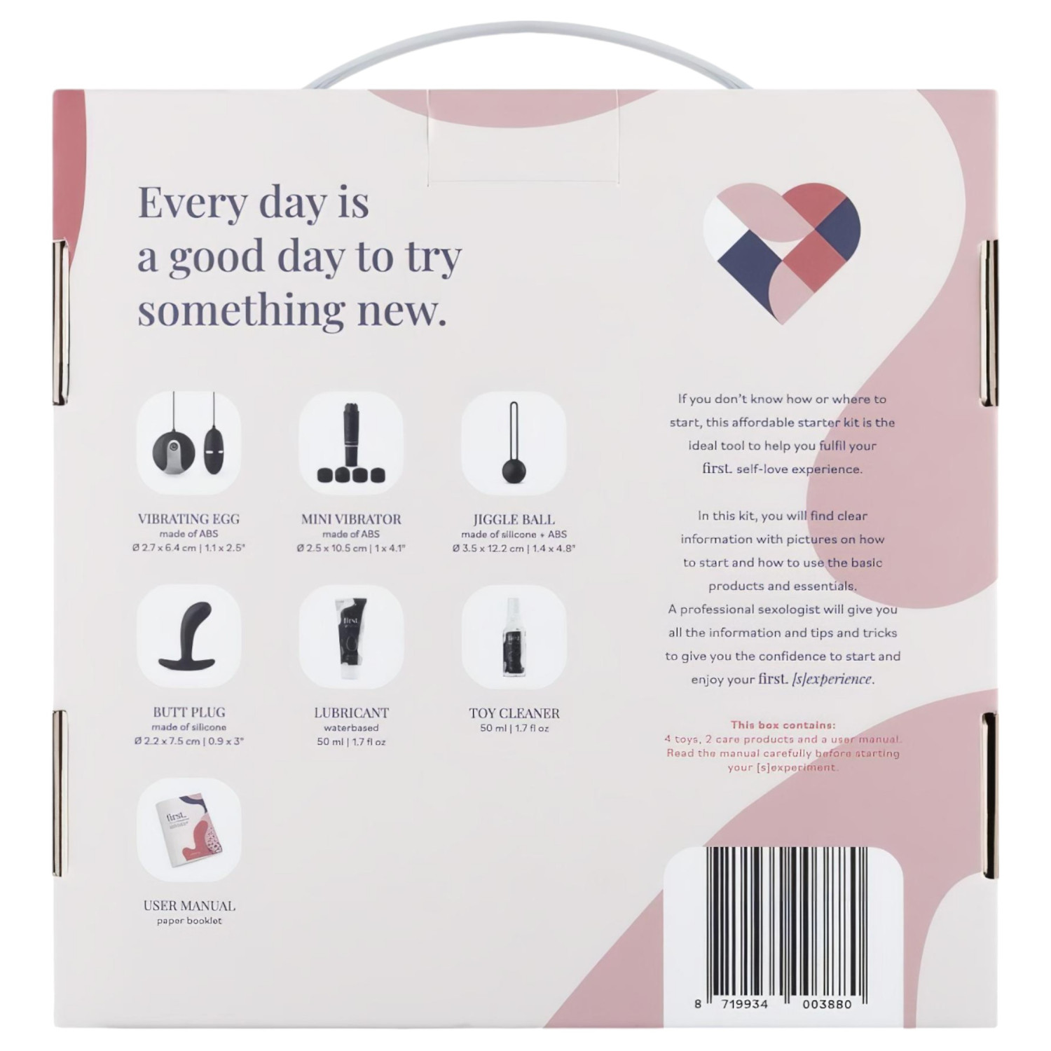 I samarbeid med sexologer har vi utviklet First [S]experience-produktserien, spesielt for de som ønsker å utforske sin egen og partnerens sensualitet, men som blir overveldet av mengden vibrerende leketøy og andre gleder. I våre startsett finner du alt du trenger for å utforske dine egne eller partnerens ønsker, alt pent pakket i en stilig eske.
