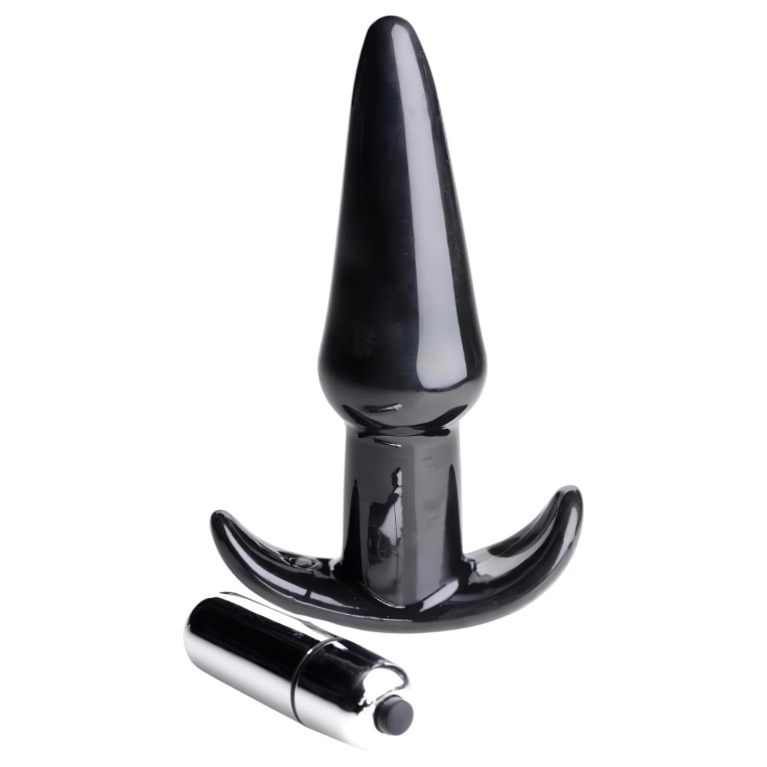 Kraftig vibrerende analkopp i middels størrelse med smal base, som sitter komfortabelt mellom baken, slik at du kan ha det på mens du har sex, med maksimal komfort.