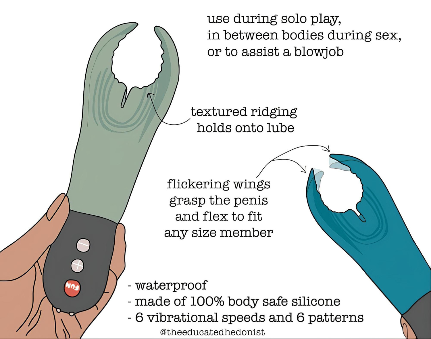 • For onani: påfør glidemiddel og beveg opp og ned langs penis, deretter aktiver vibrasjonen.