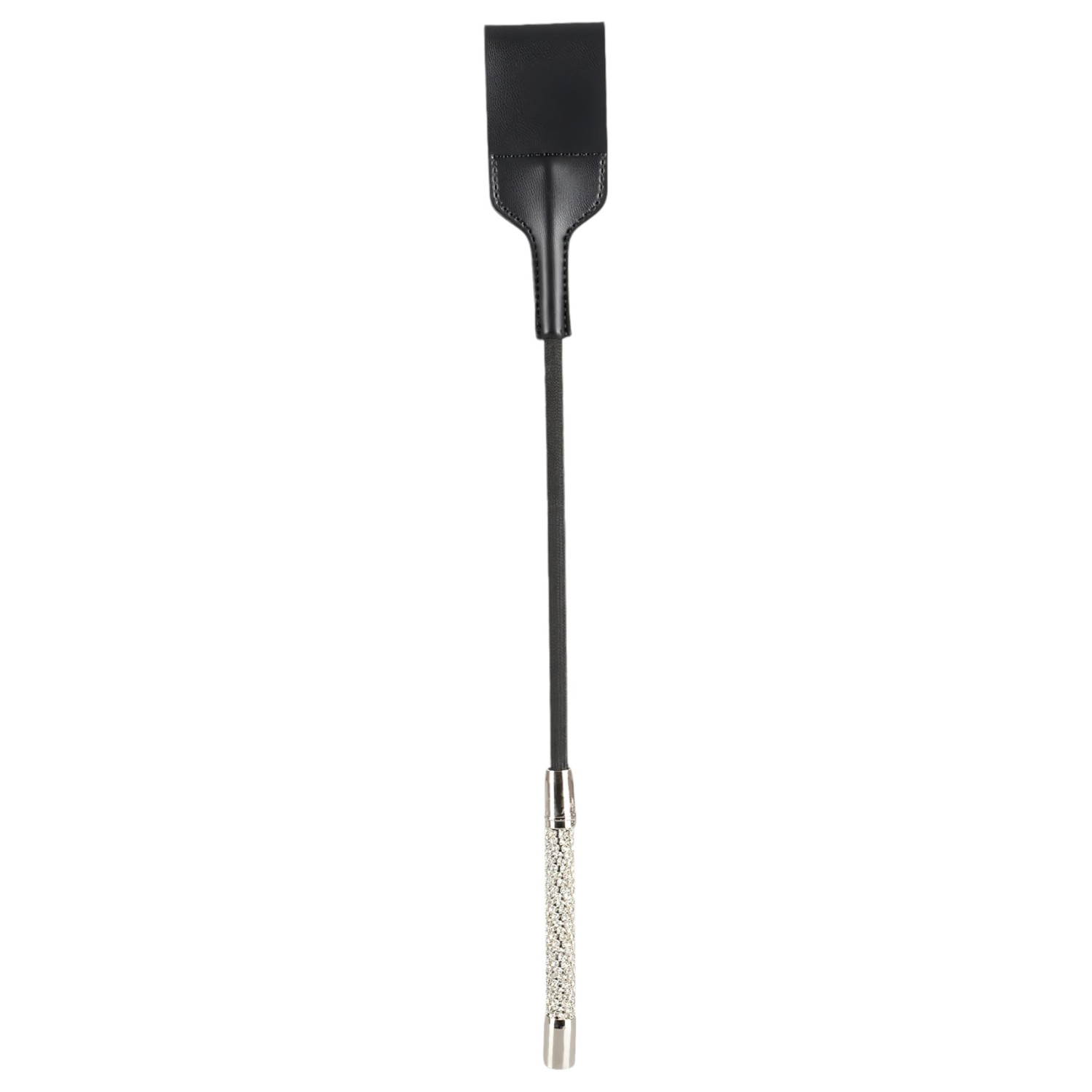 Virkelig kraftig, stikkende, dobbeltsidig lærpisk med en fantastisk håndtak pyntet med skinnende hvite strass-stener som et vakkert smykke.