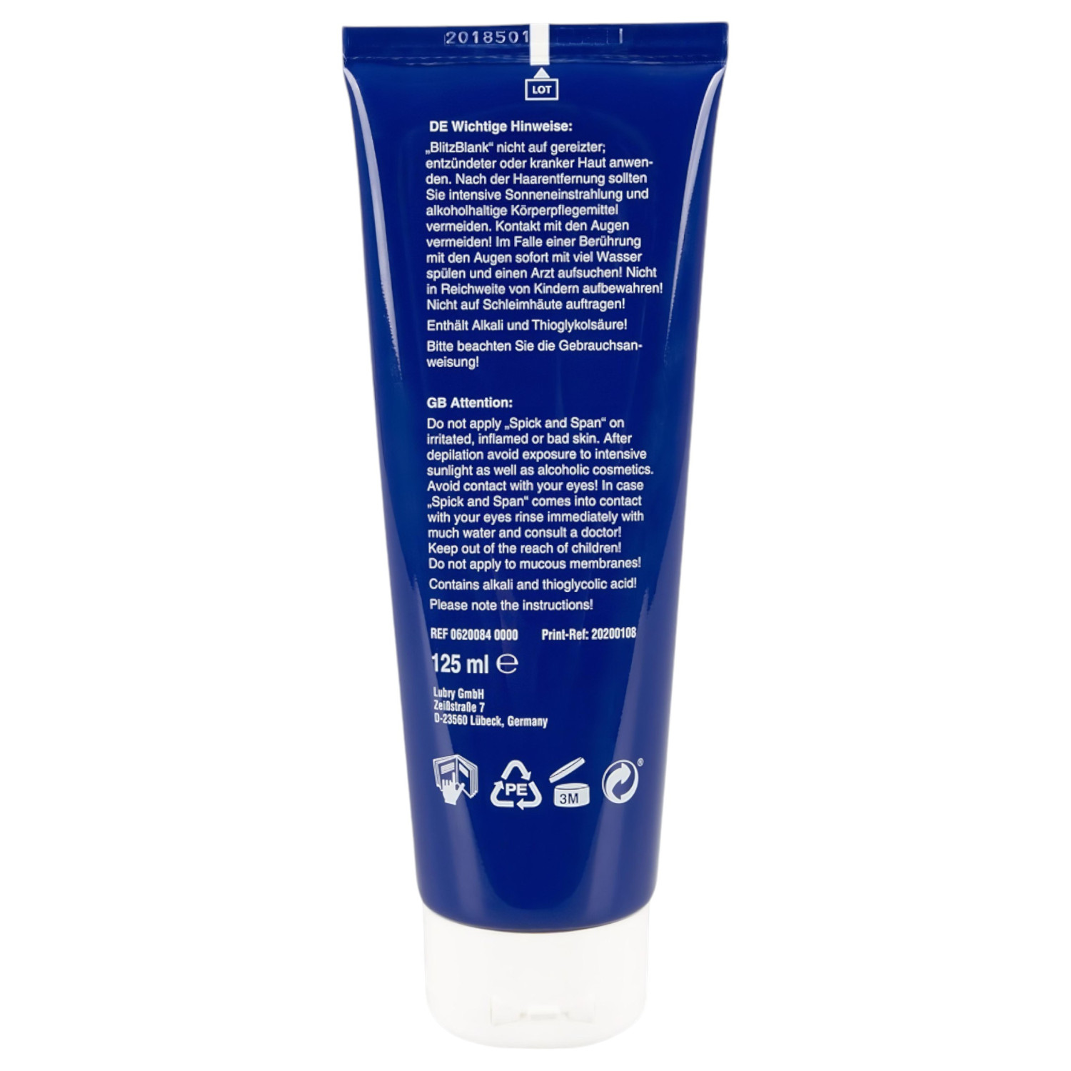 Påfør kremen jevnt på ønsket hudområde. La virke i tiden indikert på pakken, og fjern deretter kremen og hårene forsiktig med den medfølgende spatelen. Skyll grundig med lunkent vann.