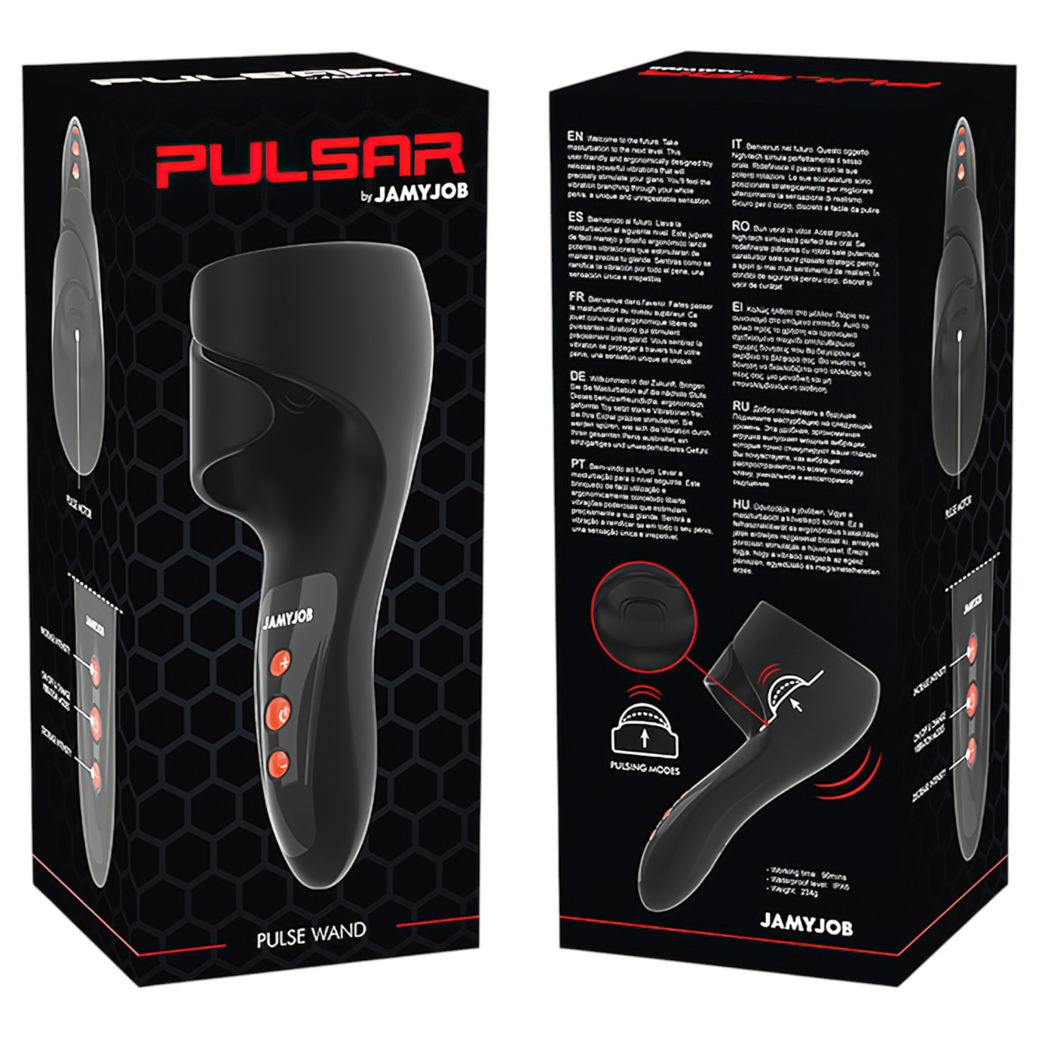 JamyJob Pulsar er designet for å stimulere alle følsomme punkter på menn - den fokuserer både på glans, penisskaftet og testiklene. De myke, fleksible silikonavtagbare vingene omslutter penis skånsomt men stramt, mens de 30 forskjellige vibrasjonskombinasjonene gir deg glede i hele spekteret. Den ergonomiske designen er brukervennlig, og med vannbestandig design (IPX6) kan den tryggt brukes i dusjen eller badekaret. Pulsar er ikke bare et flott supplement for onani, men også for parlek - for enda mer intens felles nytelse.