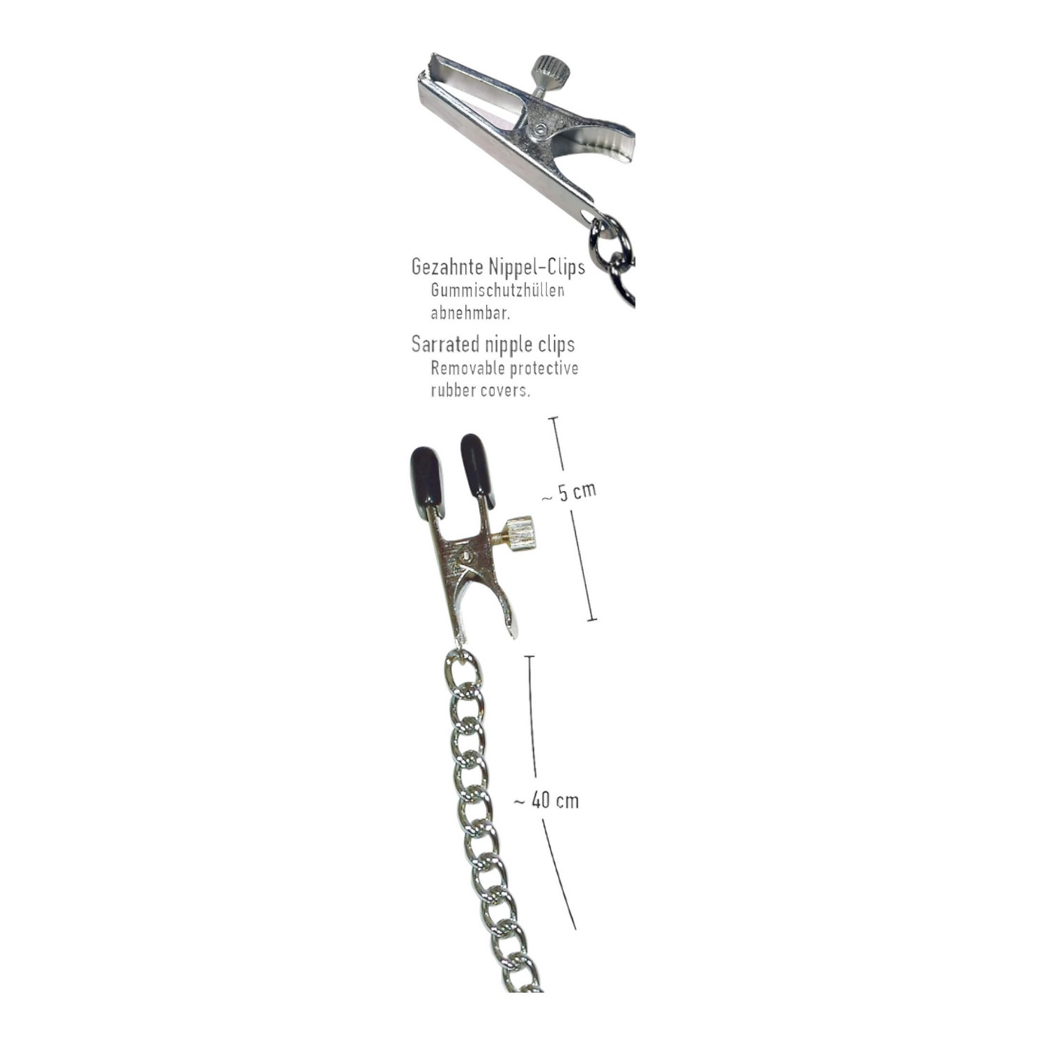 • 1 par justerbare brystvorteklemmer med metallkjede