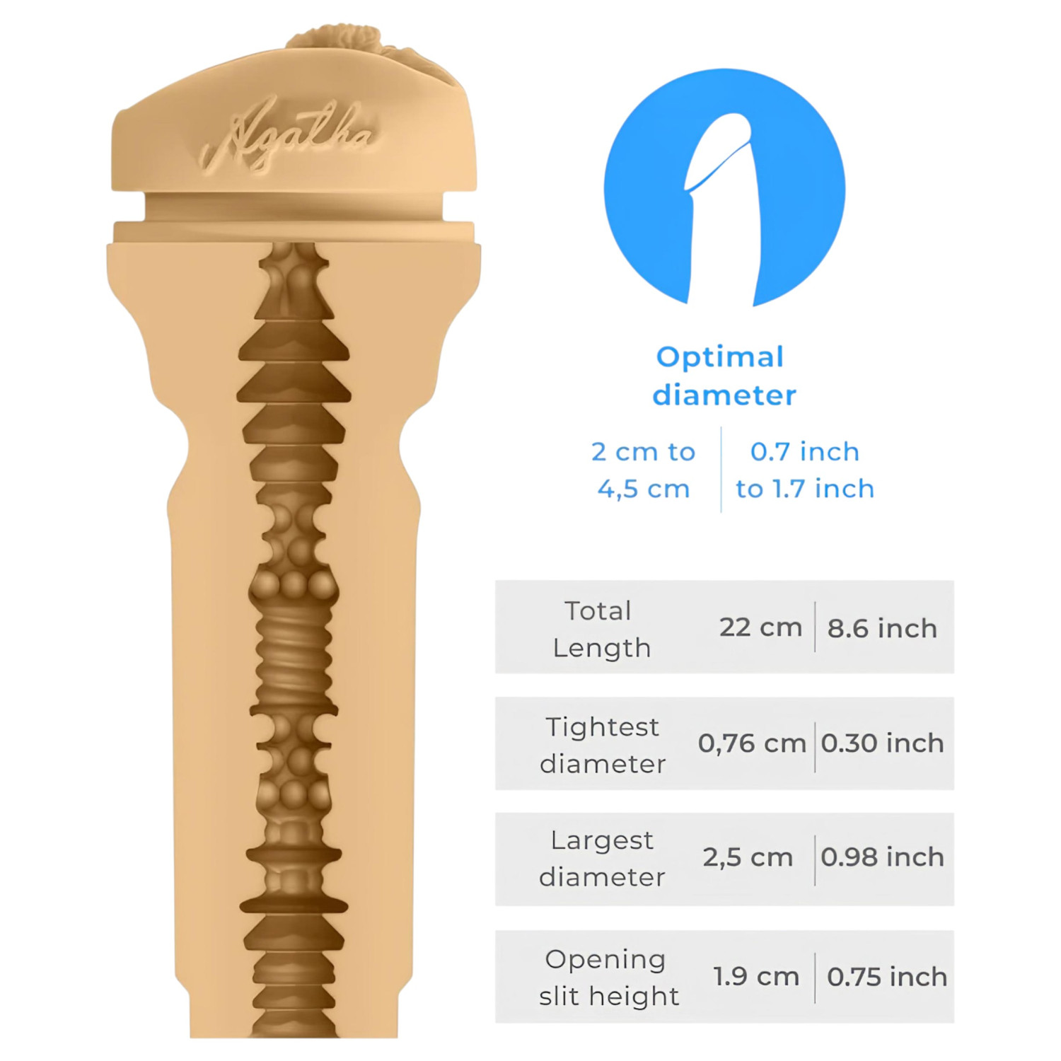 Denne realistiske masturbatoren er designet for å gi maksimal nytelse hver gang. Laget basert på den berømte voksenfilmskuespilleren Agatha Vega sine intime former, gir den følelsen av å være med henne hver gang du bruker den. Den indre teksturen er ekstremt variert og stimulerende, noe som gjør hver øyeblikk på vei til orgasme mer intens. Hvis du ønsker den mest realistiske håndholdte opplevelsen, er dette produktet for deg!