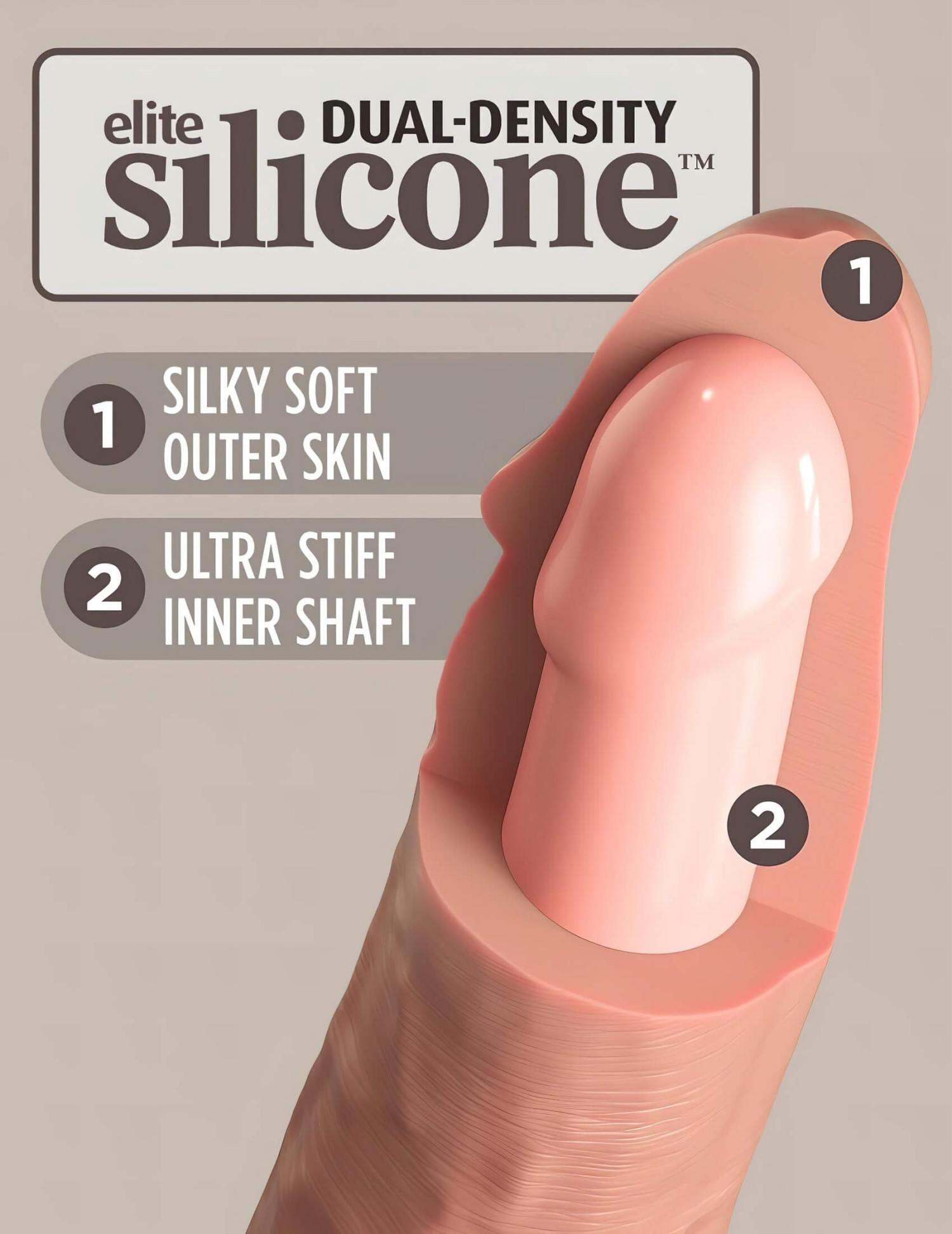 Takket være den spesielle to-lags designen gir det indre silikonlaget sterk stivhet, slik at den er like hard som den ekte, mens den ytre, ultramyke silikonlaget gjør at berøringen føles som å stryke en ekte penis!