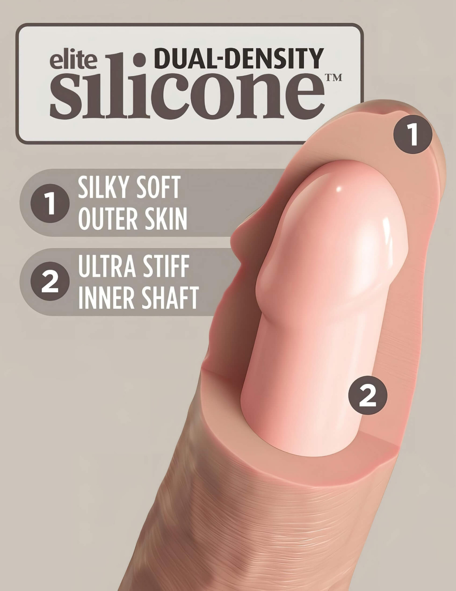 Takket være det spesielle to-lags designet gir det indre silikonlaget sterk stivhet, så det er like hardt som det ekte, mens det ytre, ultra-myk silikonlaget gir en følelse som om du stryker en ekte penis!