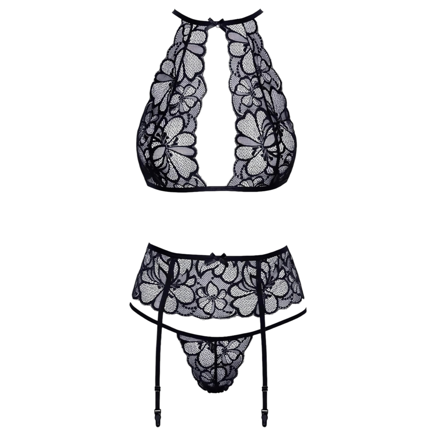 Dette er et utrolig fintmasket nettingundertøysett i tre deler som tilbyr en sensuell look og maksimal komfort. Med sin gjennomtenkte design og justerbare stropper sikrer det en perfekt passform, samtidig som det fremhever de feminine kurvene.