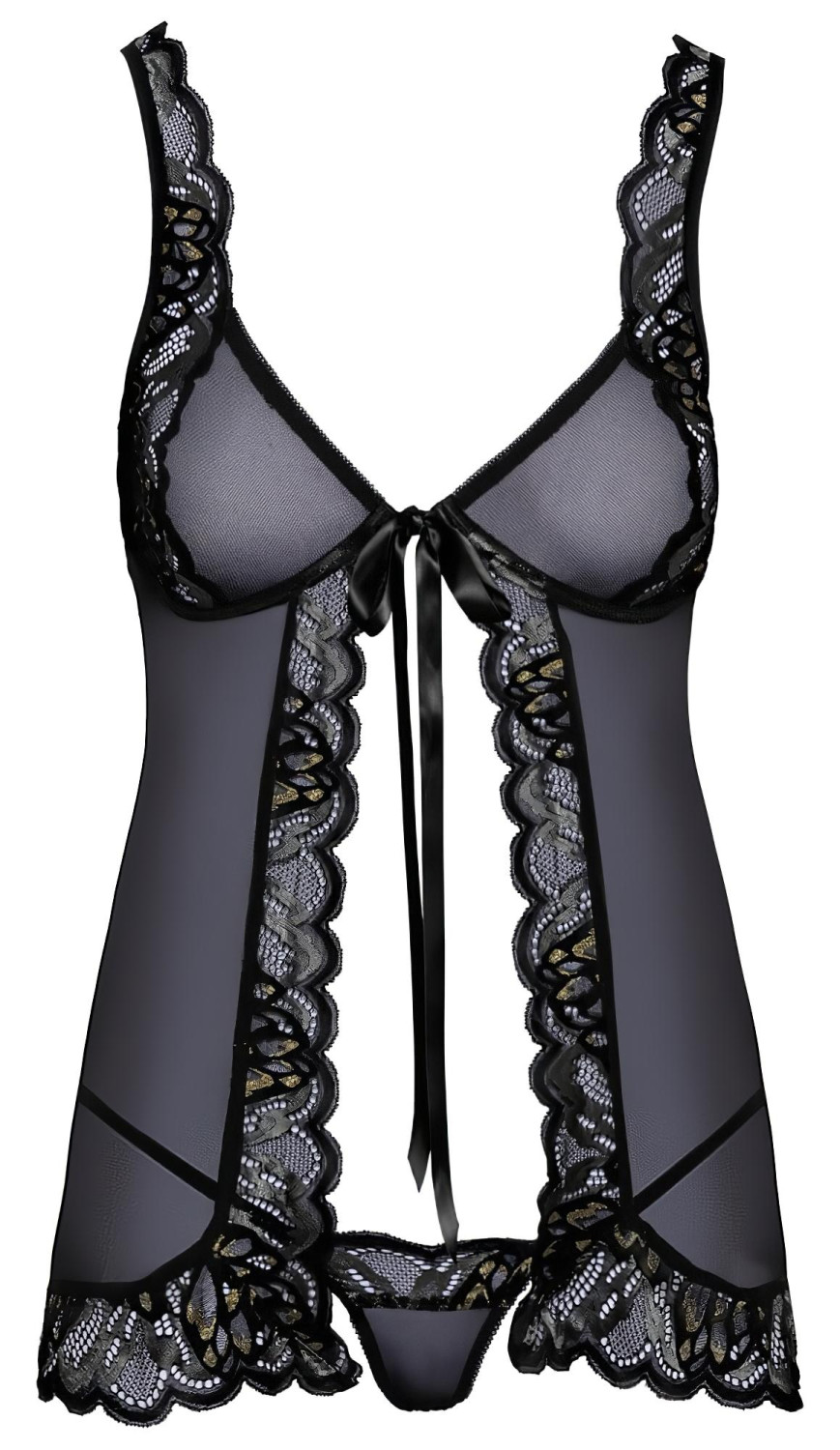 Kissable - Babydoll med bånd, åpen front (svart) med stringtruse