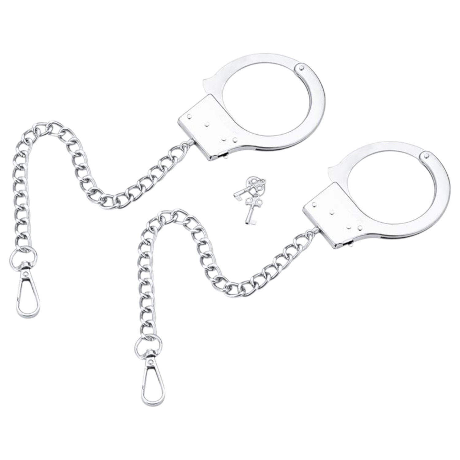 Plasser håndjernene enkelt rundt partnerens håndledd eller ankler, og bruk kjettingen og ringen for å feste dem på ønsket sted. Lås håndjernene med de medfølgende nøklene, og la spenningen ta over!