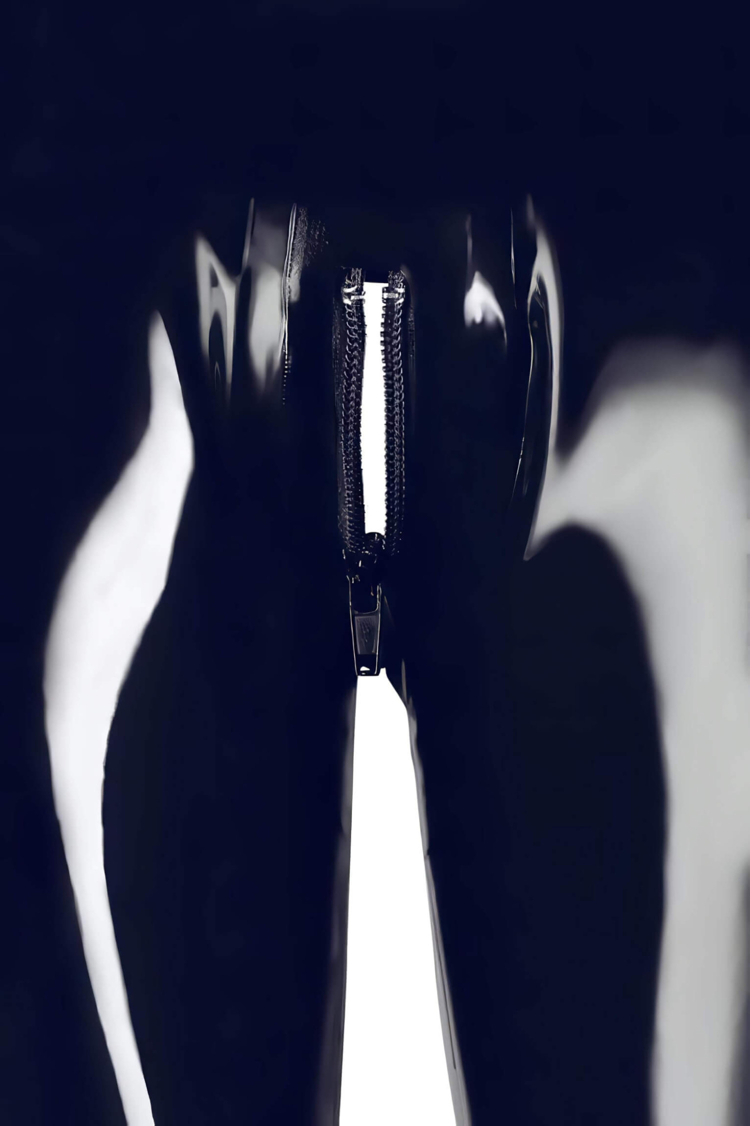 • 1 svart latexbukse med to-veis glidelås, matt overflatebehandling.