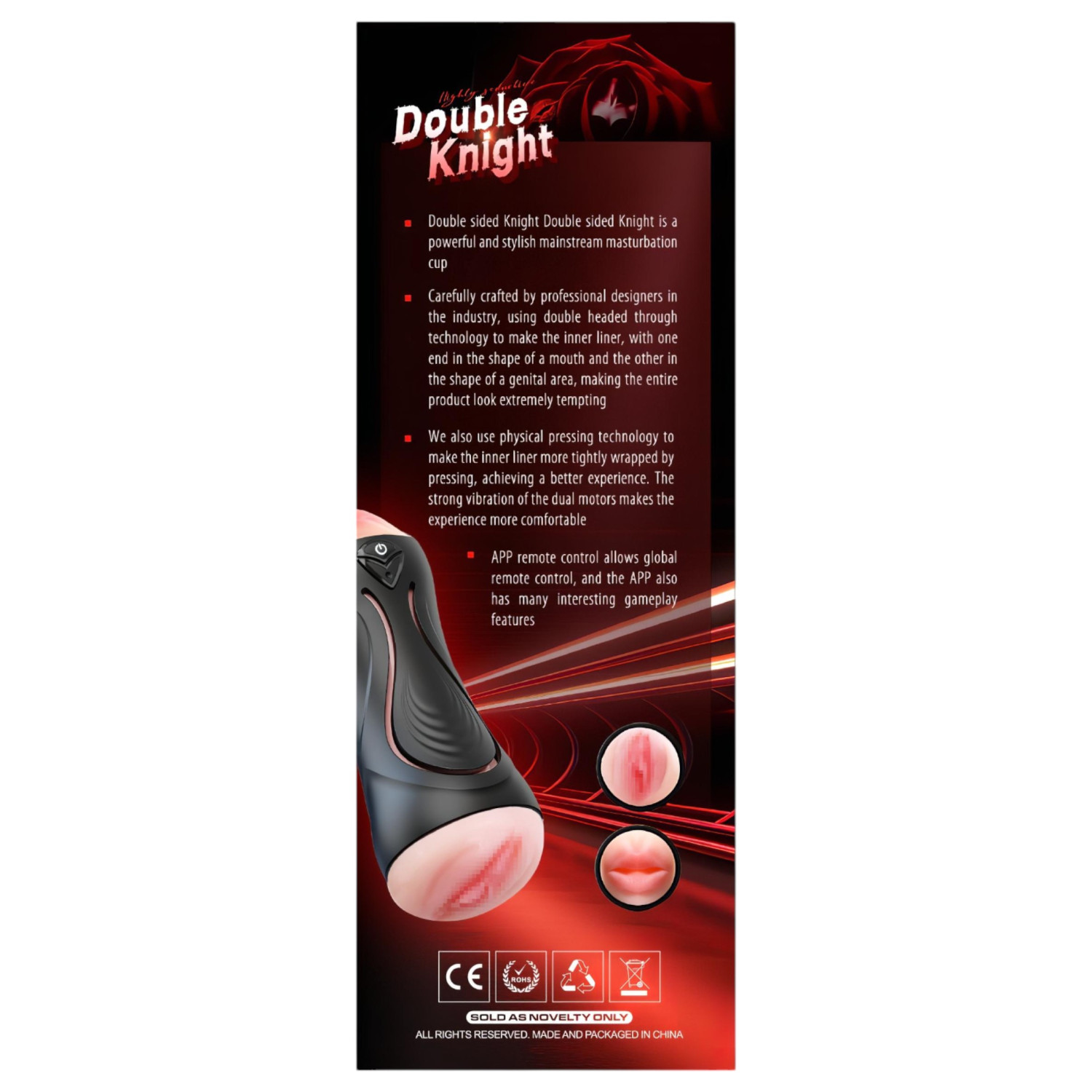 • The Double Knight masturbasjonskopp har en unik teknikk med to ender: den ene enden er munnformet mens den andre er formet som en kunstig vagina, noe som gir en variert og spennende opplevelse.