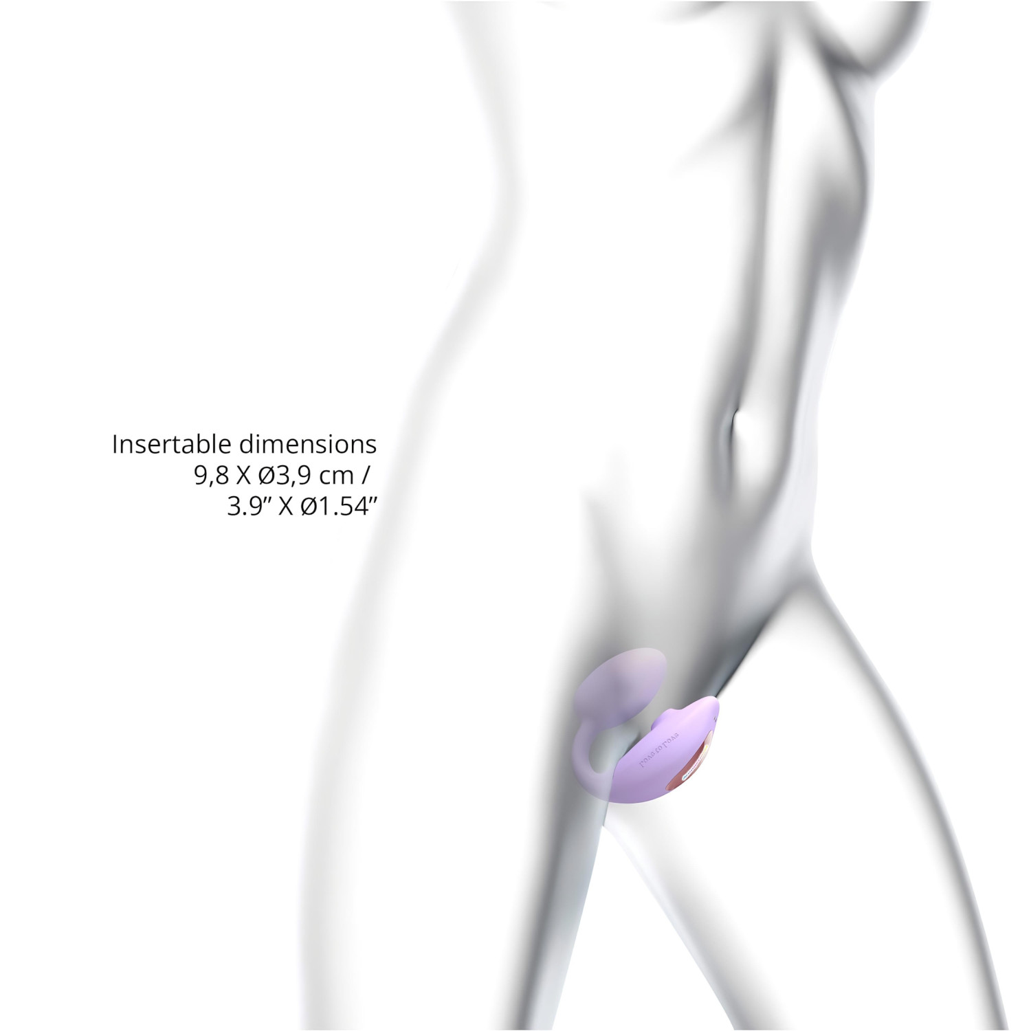 Plasser det eggformede skaftet innvendig i skjeden, slik at klitorisstimulatoren hviler mot den ytre delen. Enhetens ergonomiske, fleksible design gjør den lett å tilpasse til kroppen. Trykk og hold knappen for å aktivere.