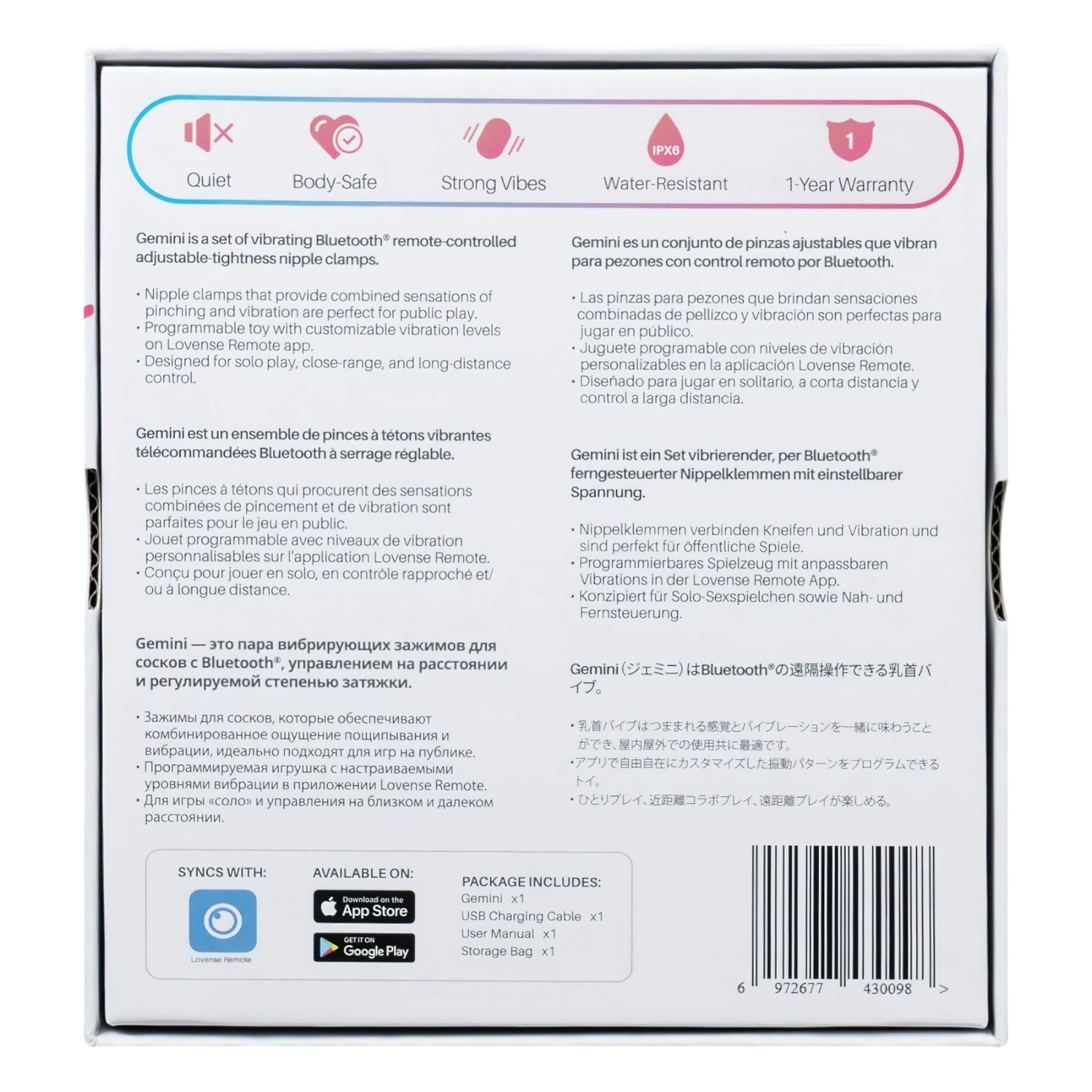 • Innovativ teknologi: Lovense Gemini er verdens første justerbare, vibrerende brystklype som kan kontrolleres fullt ut via en app.