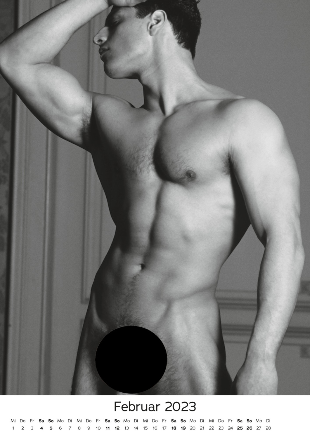 Dette svart-hvitt pin-up kalender er for de mest vågale: hver måned presenterer en annen sexy mann hele sin muskuløse kropp – overlater ingenting til fantasien. Perfekt valg for de som ikke liker å la visuelle opplevelser henge igjen.