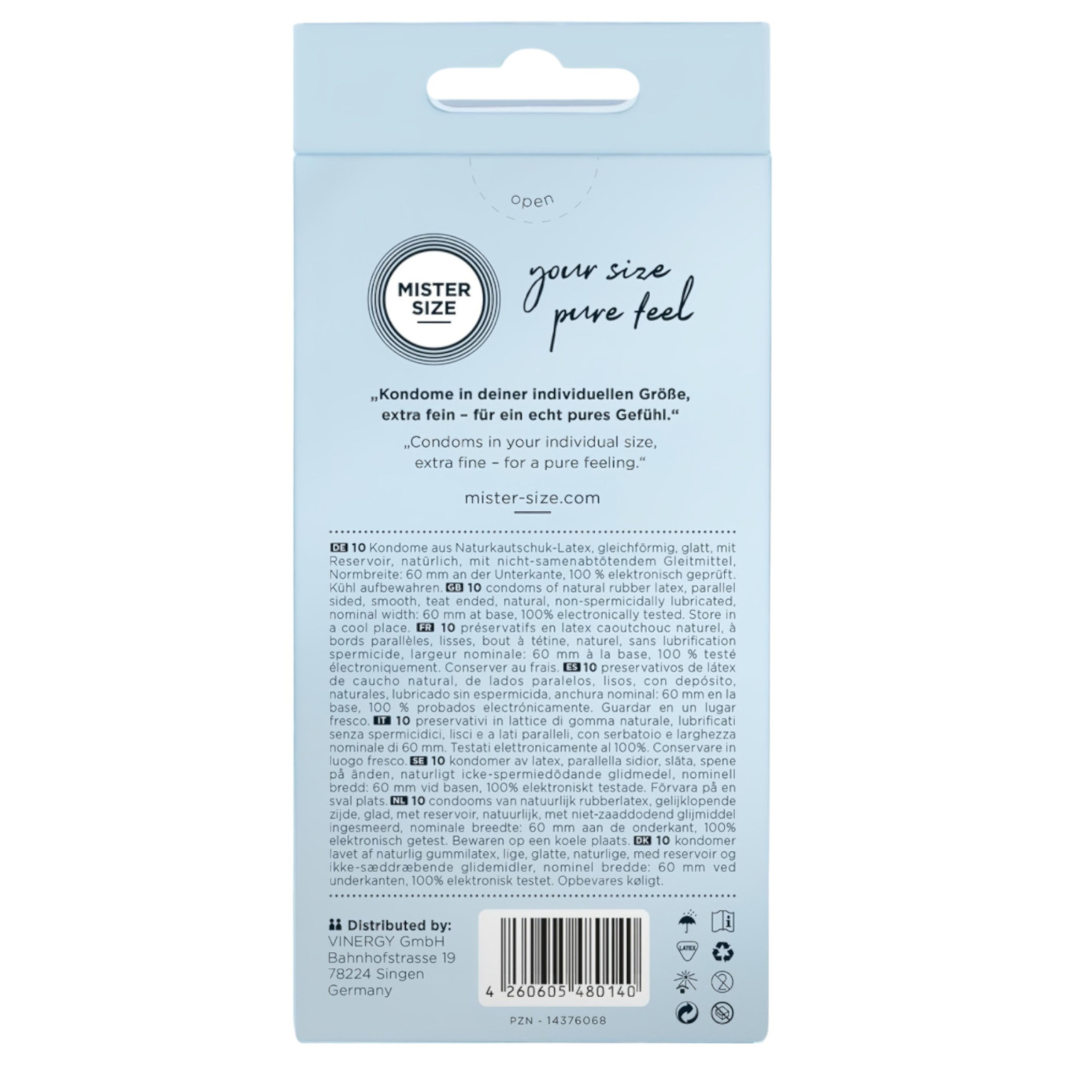 • 10 stk Mister Size kondomer i 60 mm størrelse, hver pakket individuelt.