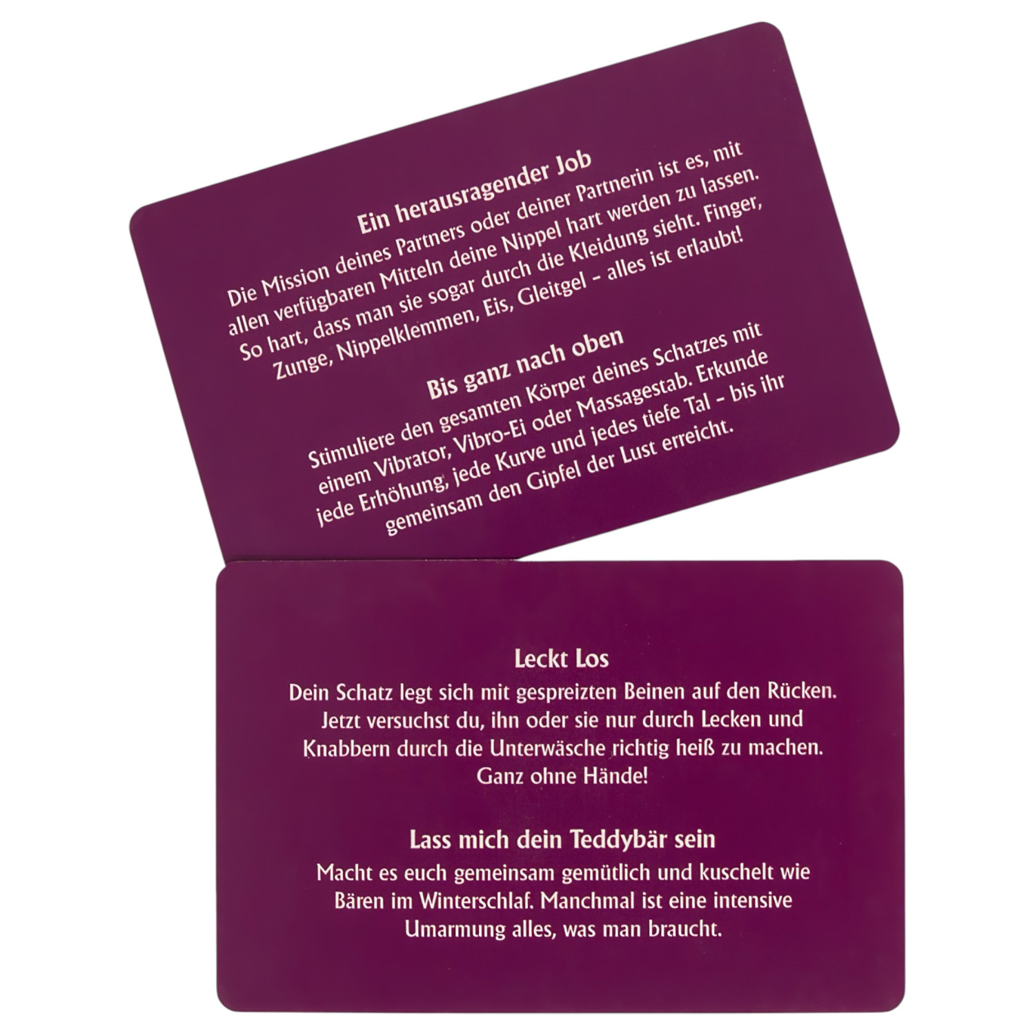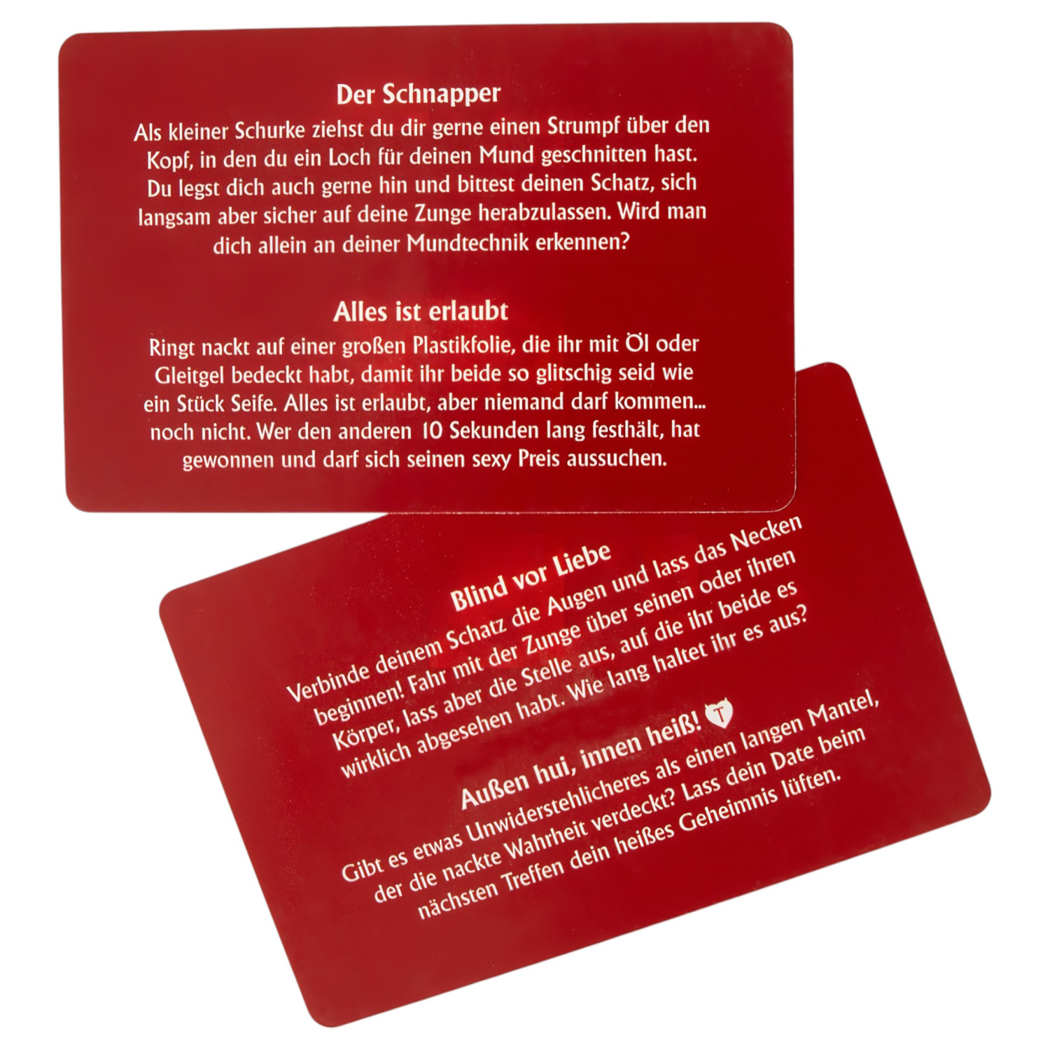Under spillets gang venter mer enn 390 underholdende utfordringer på dere, på tre forskjellige nivåer (Intim, Lidenskap, Het). Etter hvert som spillet skrider frem, vil dere oppleve morsomme samtaler og spennende oppgaver, mens dere oppdager mer om hverandres kropp og sinn, og kommer nærmere å finne ut hva som virkelig tenner partneren deres! Når nivåene øker og stemningen intensiveres, blir også utfordringene mer intime, lidenskapelige og hete!