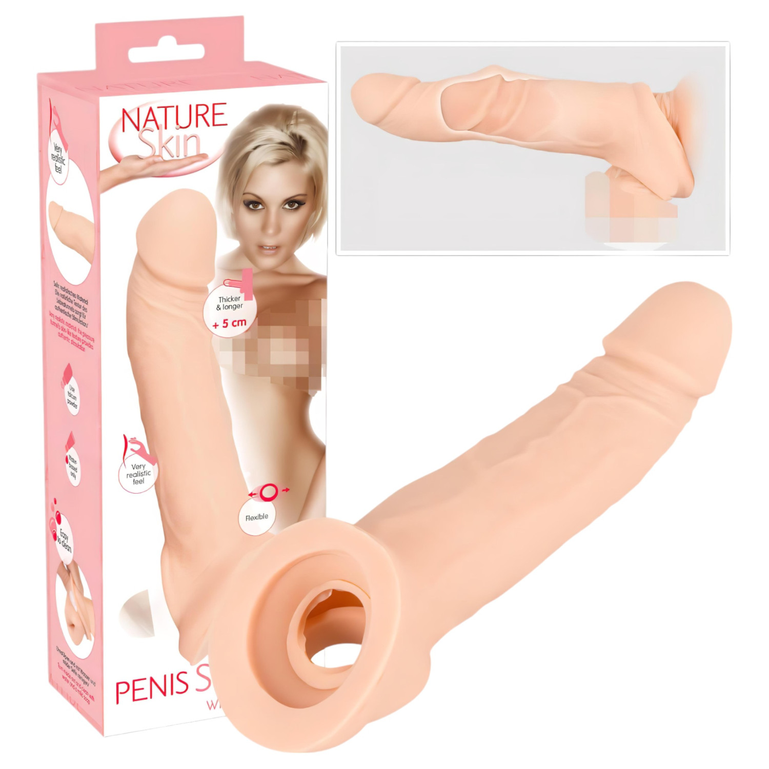 Oppdag den realistiske penishylsen som forlenger og gjør penis tykkere med 5 cm for en enda mer intens nytelse!