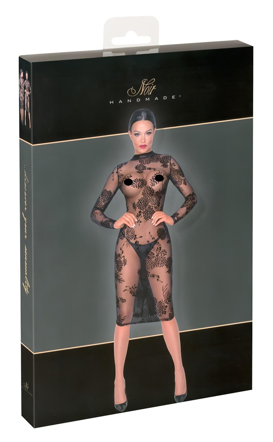 Noir - Gjennomsiktig, blomstrete, langermet kjole (svart) - M