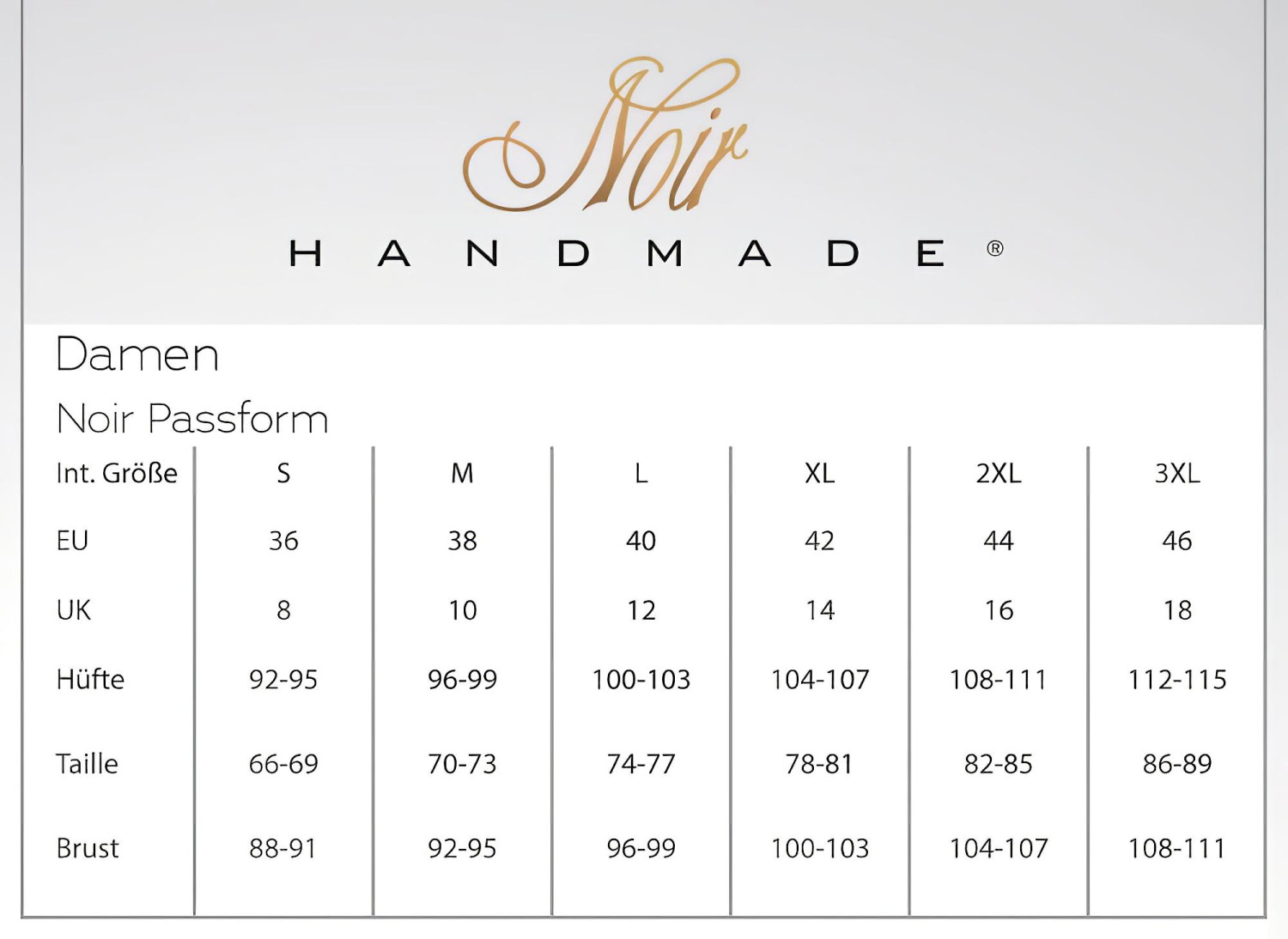 • Når du velger størrelse, bruk alltid den unike størrelsestabellen fra Noir-kolleksjonen.