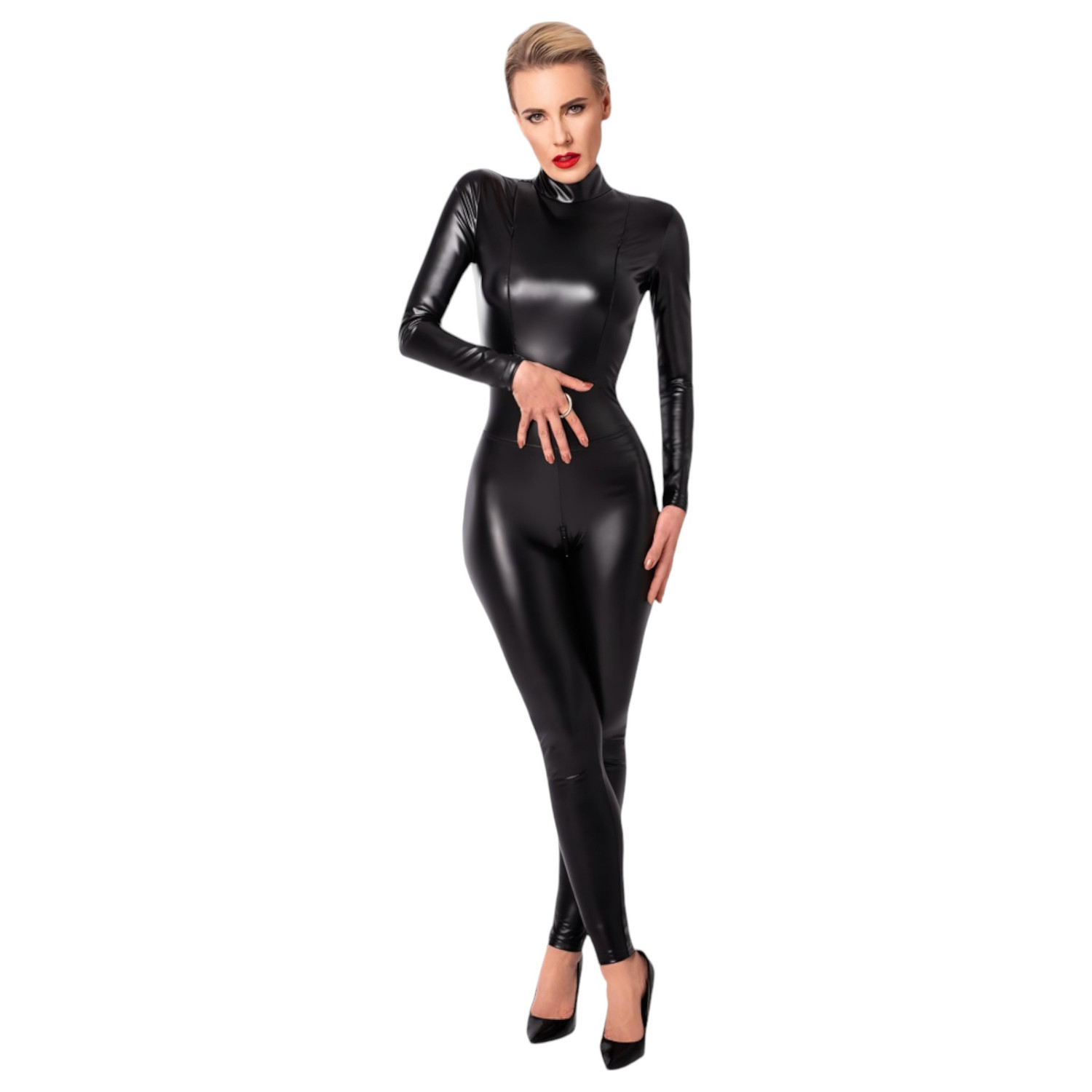 Lekker sexy lang jumpsuit som dekker hele kroppen din, med en stor ring i front og full glidelås.