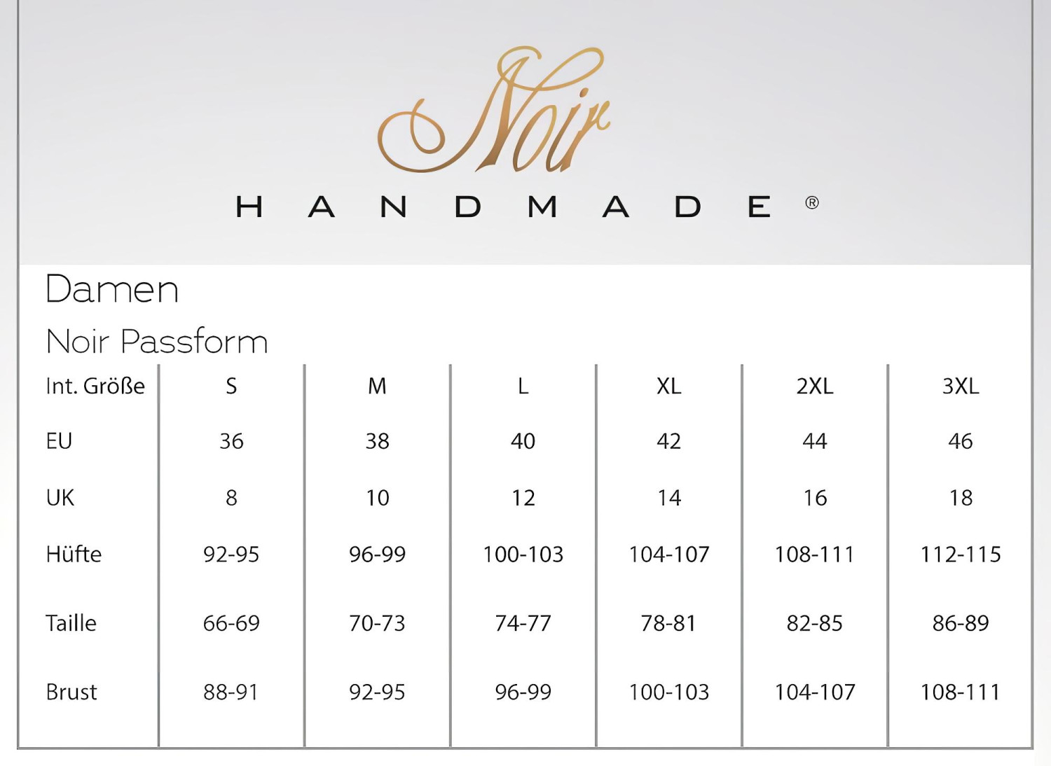 • Velg alltid størrelse i henhold til Noir-seriens unike størrelsestabell – den finnes blant bildene.
