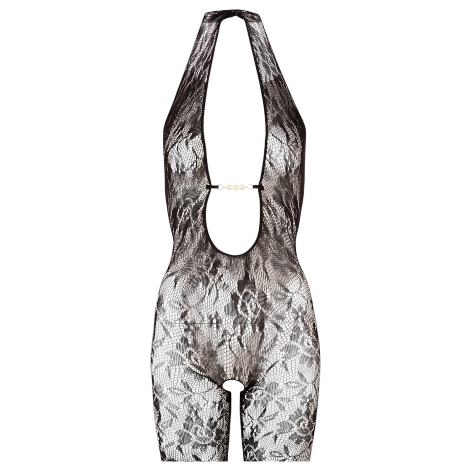 • Hvite perledekorasjoner på den dype utringningen