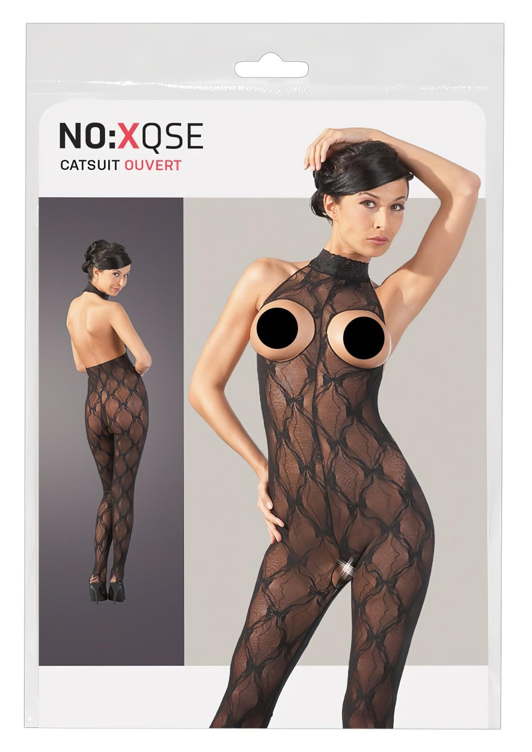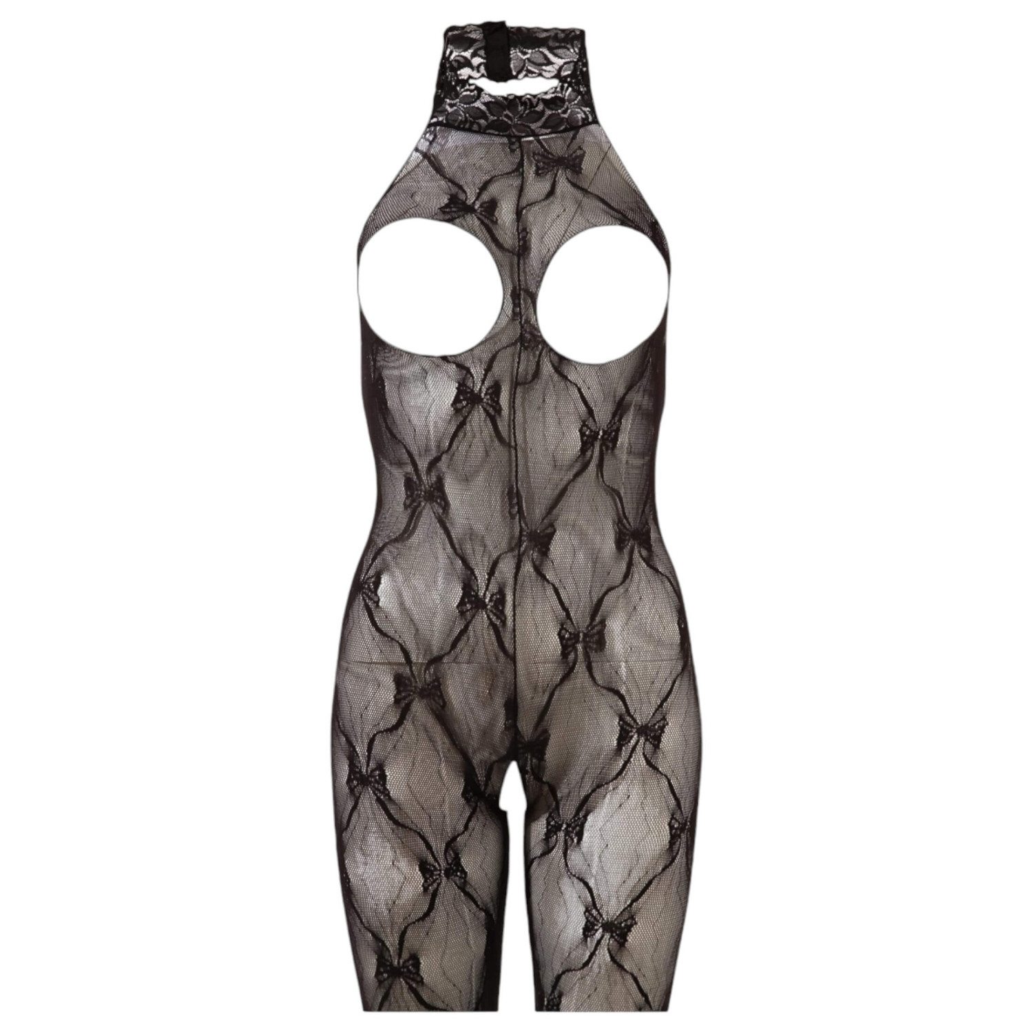 Forførende sexy onesie som dekker hele kroppen og fremhever brystene.