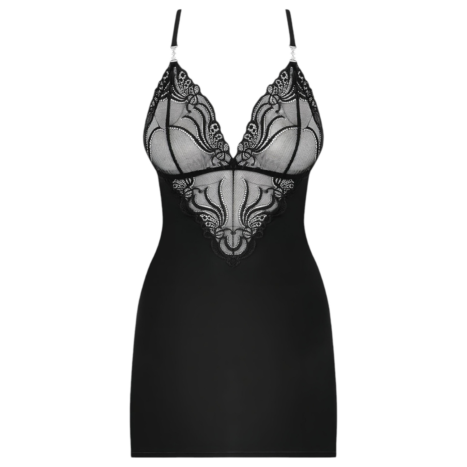 Obsessive 828-CHE-1 - Elegant kjole med stropper og stringtruse (svart)