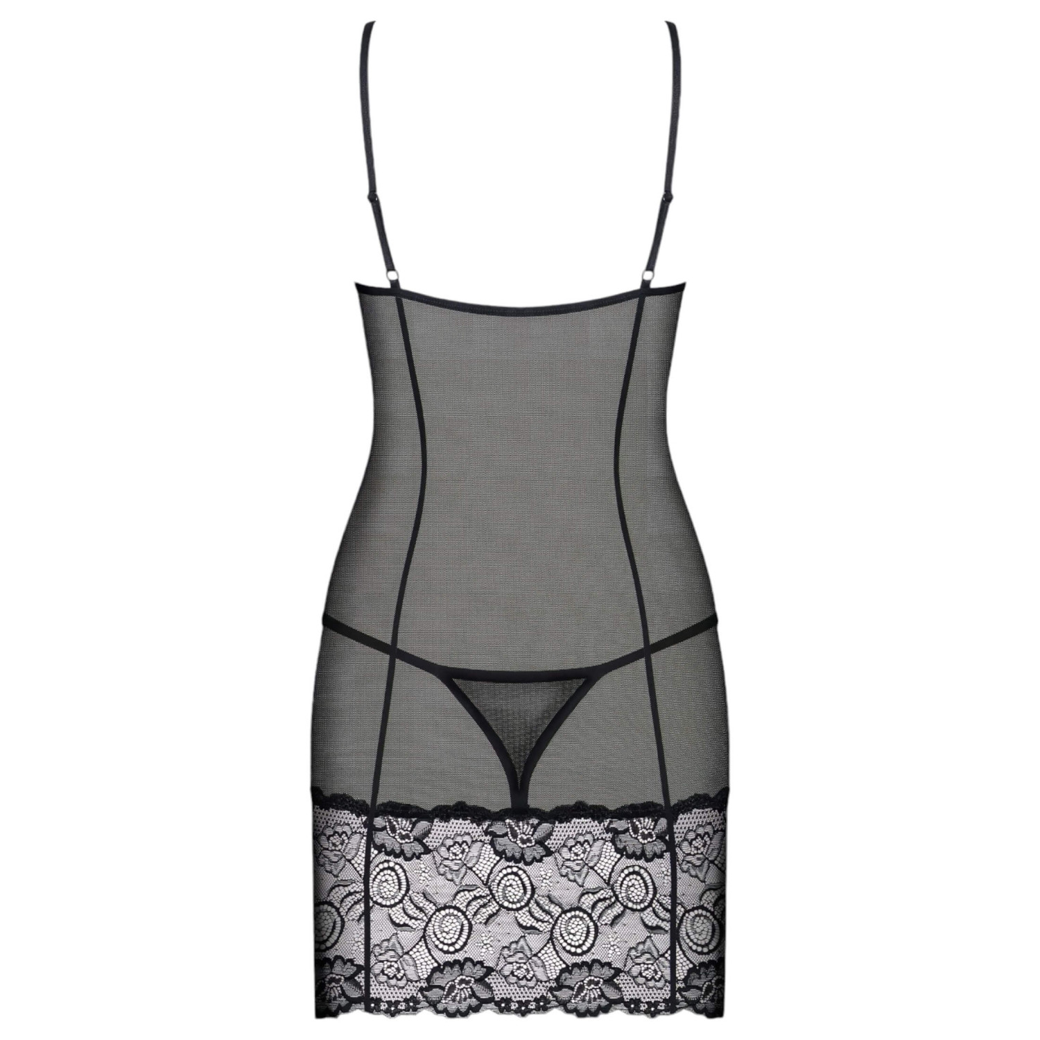 Obsessive Alluria - blondenattkjole og stringtruse (svart)