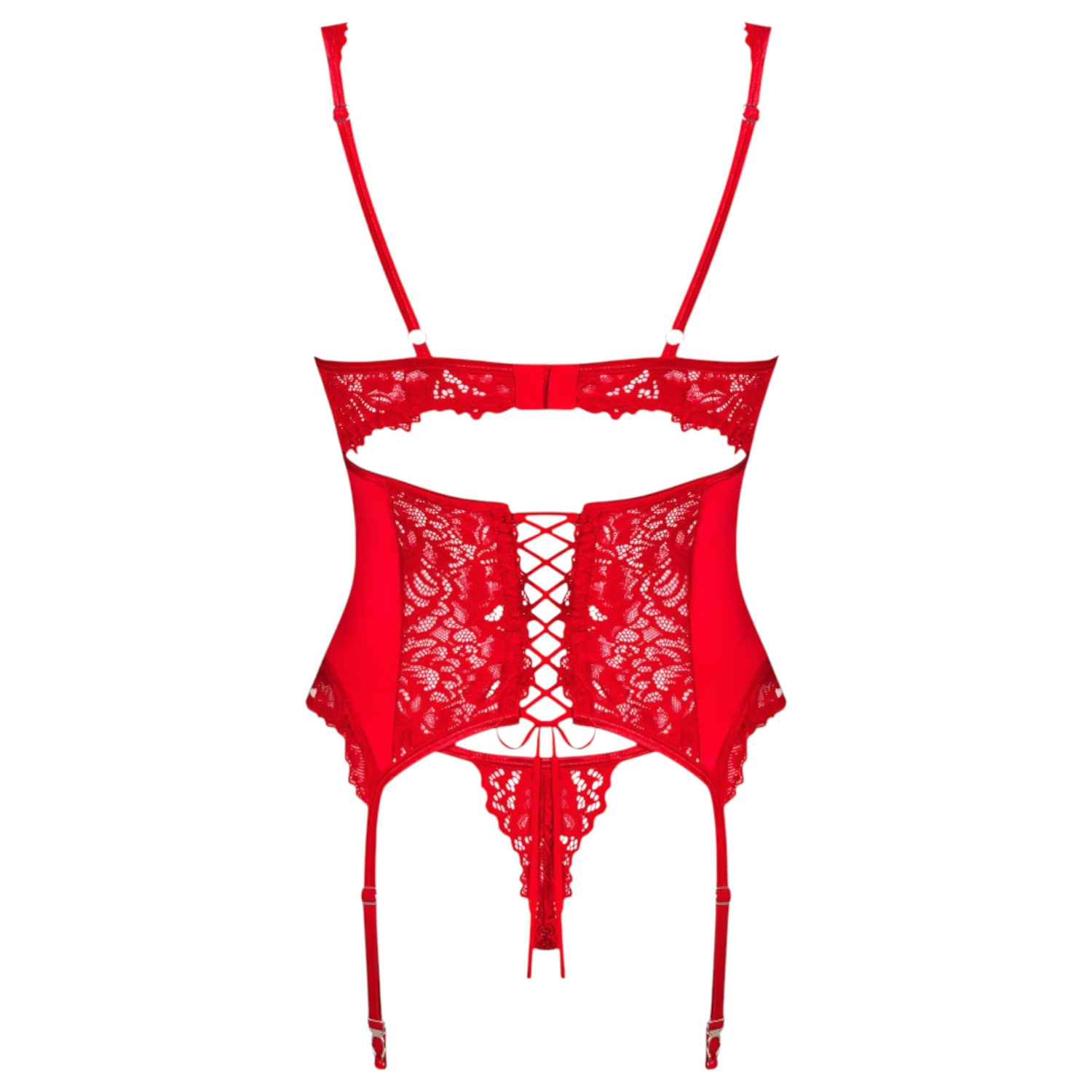 Obsessive Amor Cherris - Rødt Blondeundertøy med Strømpeholder