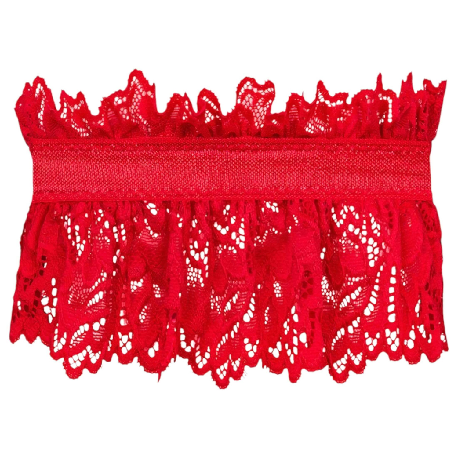 • 1 stk rød blonder-strømpestropp med satin sløyfe