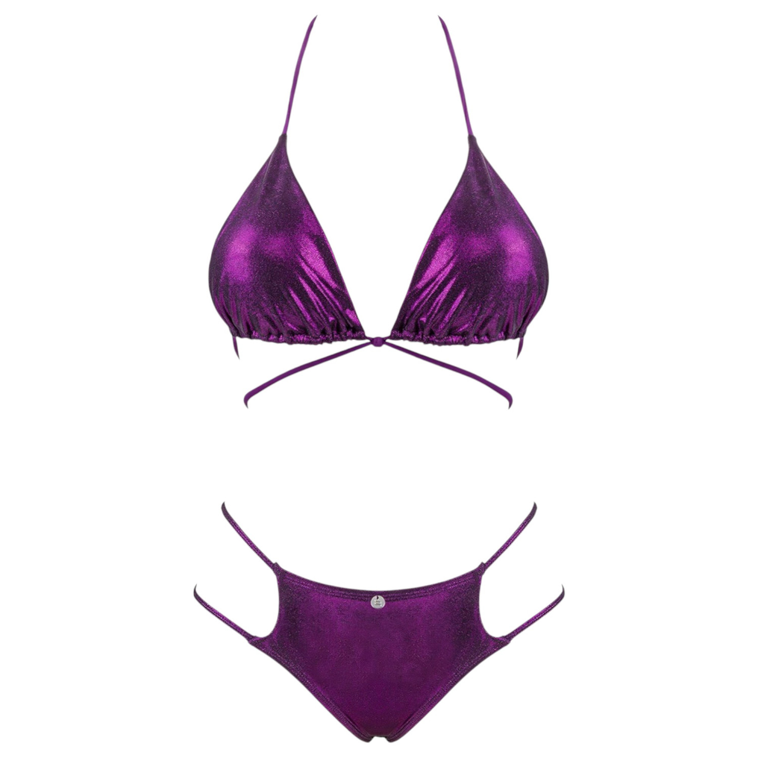 Spektakulær bikini med metallisk glans, klassisk trekantform med dristige stroppløsninger som gir en supersexy look!