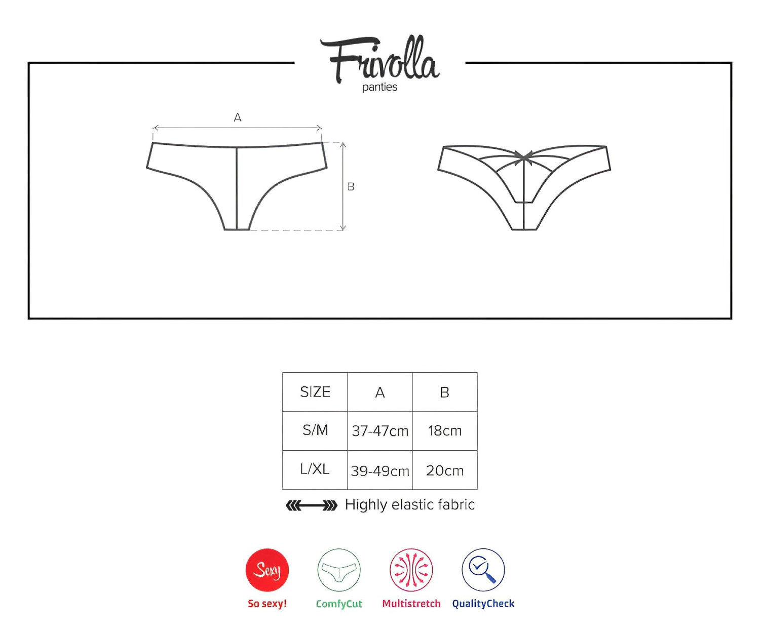 • Kun noen få elastiske stropper og en sjarmerende satengsløyfe dekker øvre del av baken – spesiell, flørtende løsning