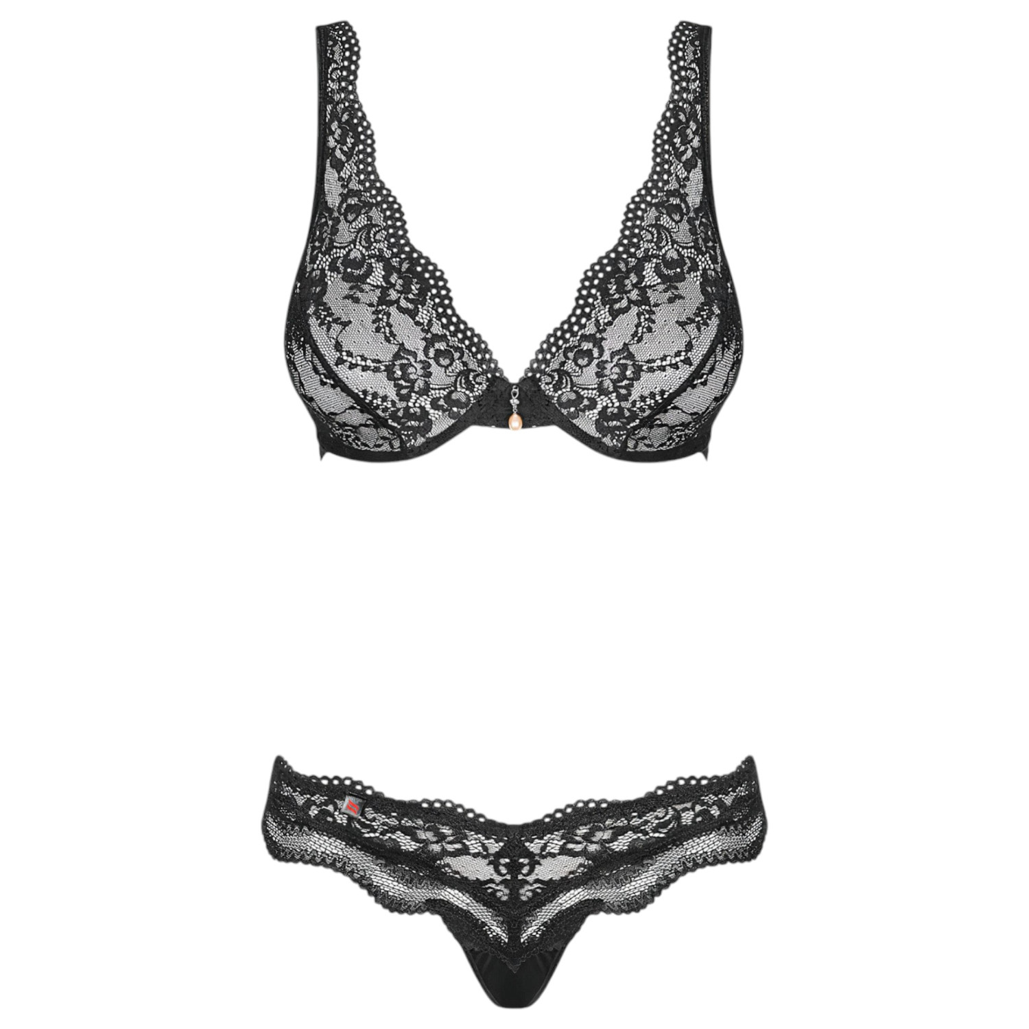 Eksklusivt todelt undertøyssett dekorert med blomsterdesign og en glitrende dekorasjon som gir det en ekte luksuriøs look!
